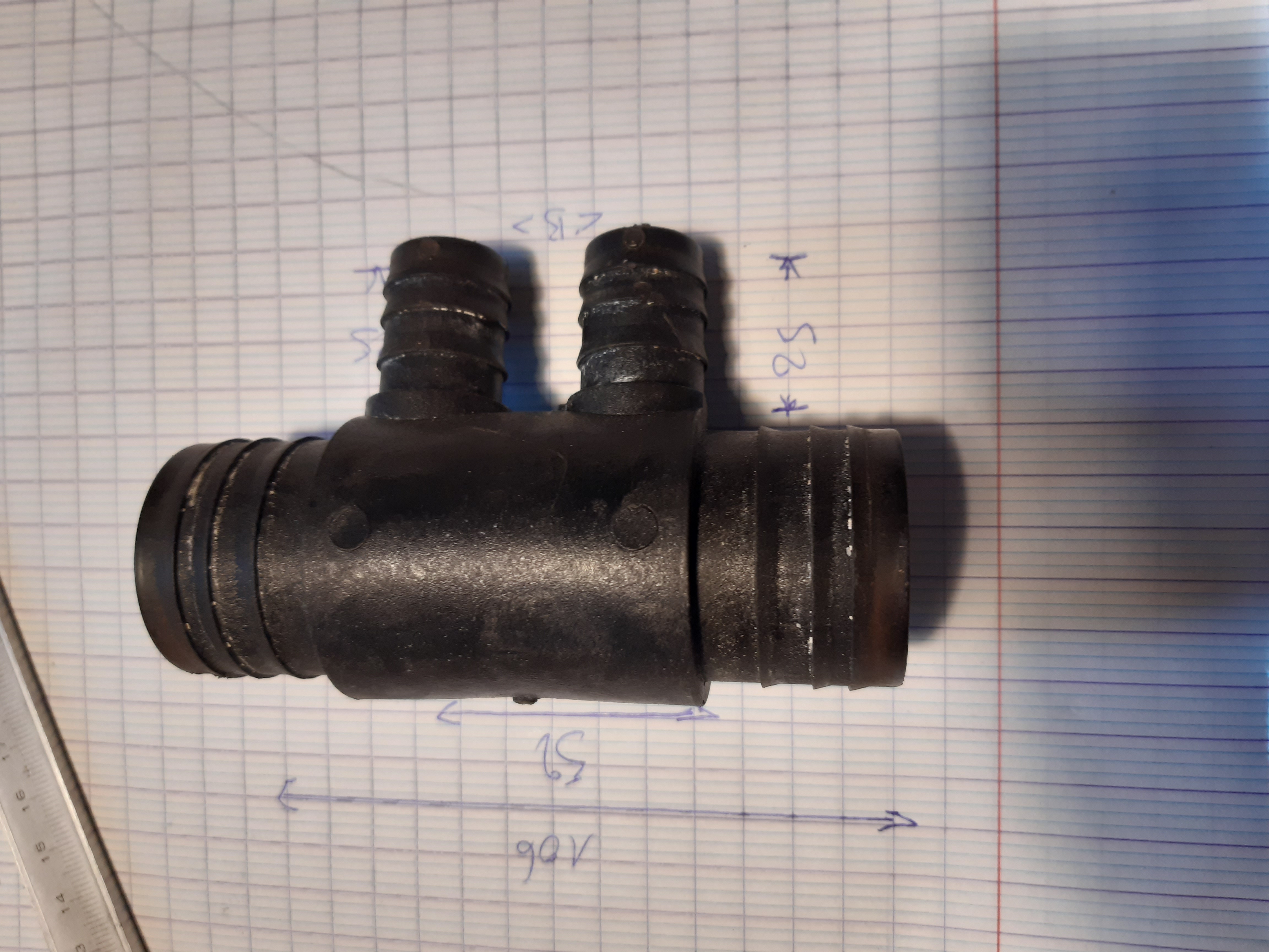 je pense qu il faut compter en longueur totale 110mm et les 2 petits piquages 30mm de long chacun , a peu près .
