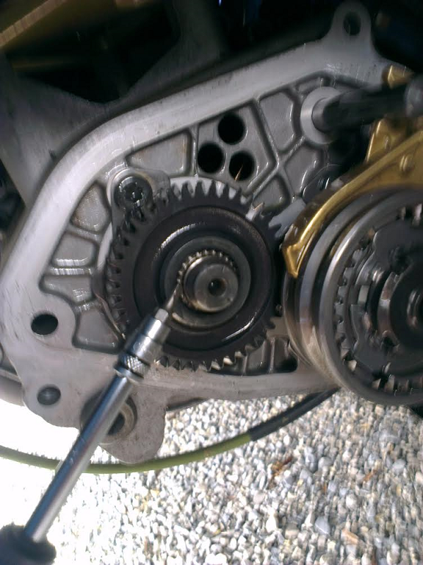 Pas de cric dans l'auto.... me suis quand même débrouiller pour ouvrir !! Bilan, l'anneau élastique (clip) en bout d'arbre primaire à cassé, la rondelle est venu taper dans un pignon et elle m'a percé le carter de 5