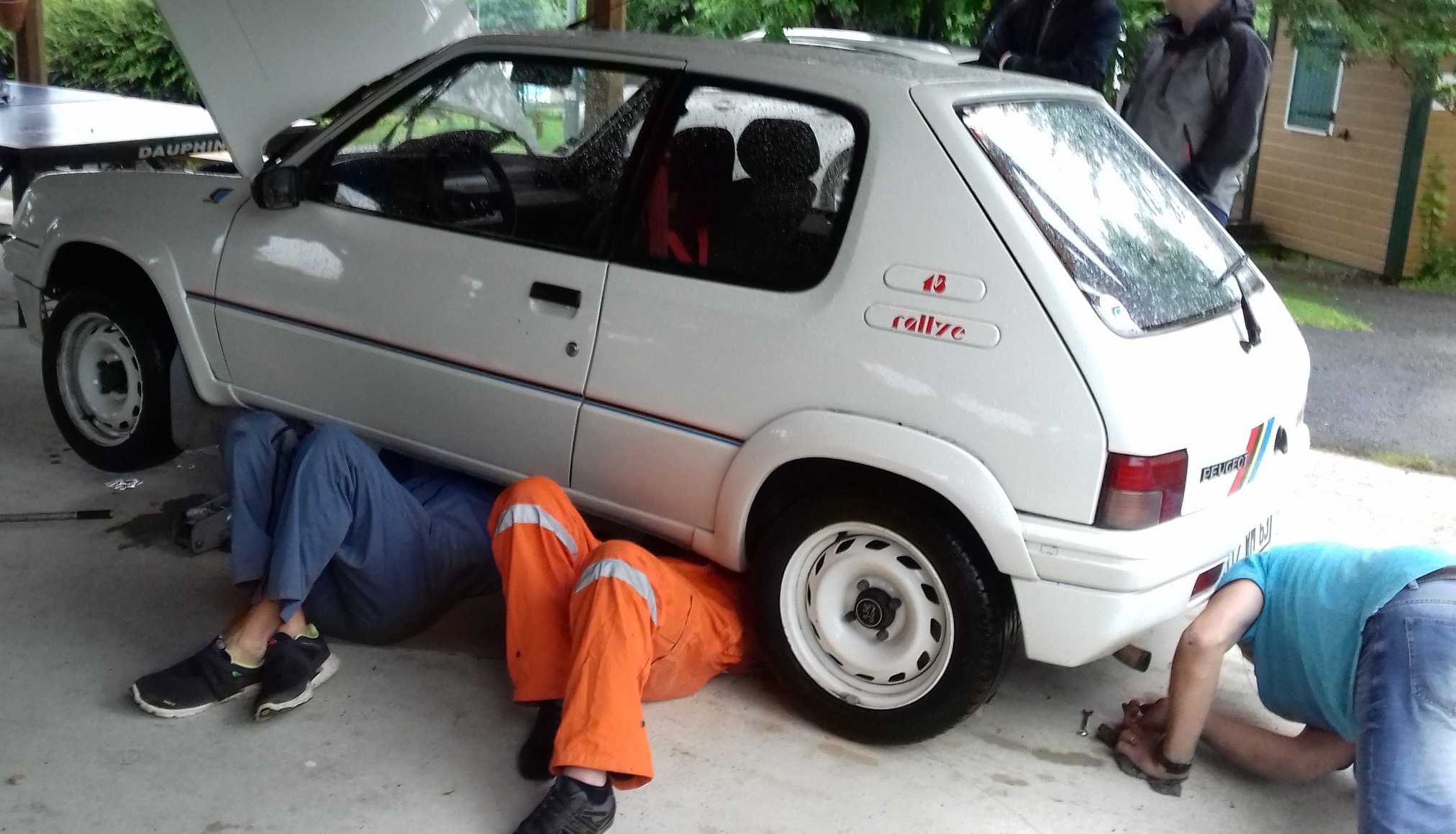 On n'est pas allé bien loin puisque à 15m de notre place de stationnement, Yannou a vite remarqué que je perdais de l'huile de boite