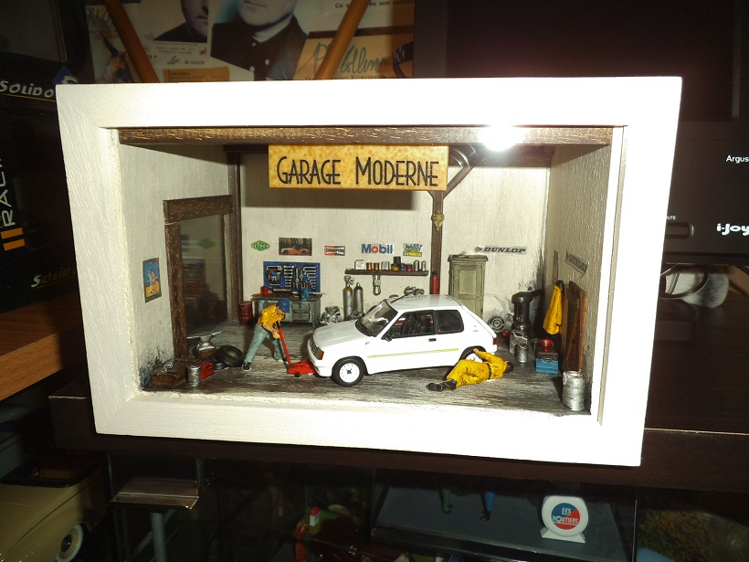 la boite était vide, je l'ai ouverte, et placé une 205 rallye dedans ... je trouve le rendu sympa... non??