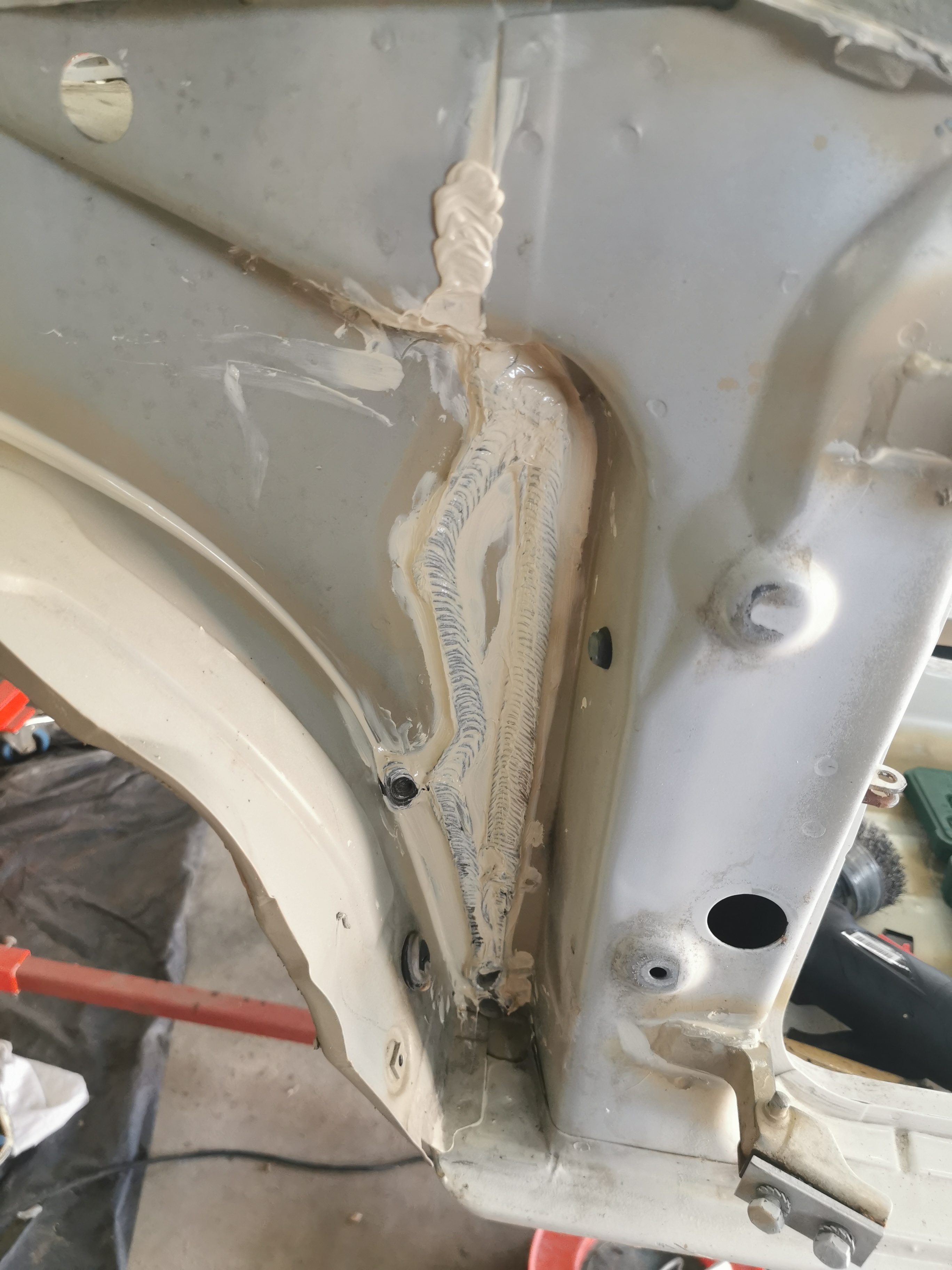 -déposé des ailes avant pour refaire les joints de caisse qui son derrière.