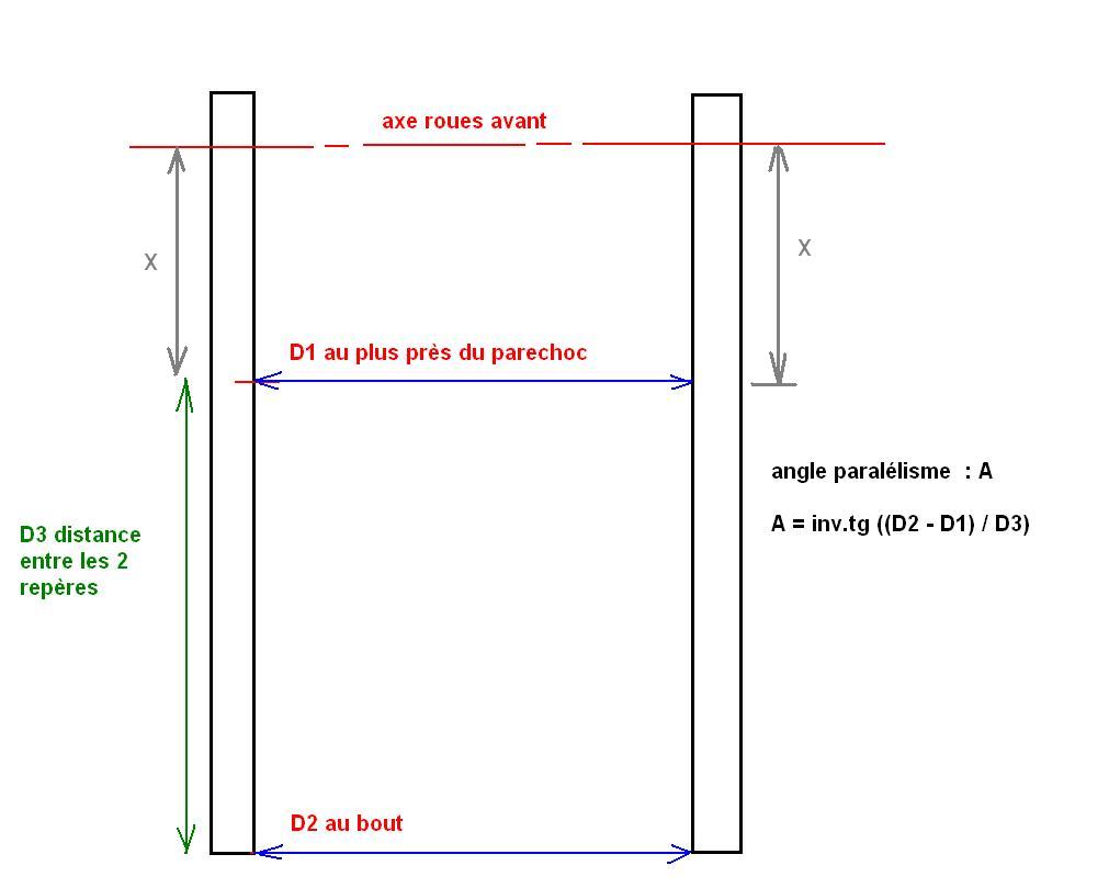 Plus la distance entre D1 et D2 sera grande, plus " l'appareil " sera précis. La RTA donne un paralélisme de 0,5° , à moduler suivant vos préférences. ( je vais jusqu'à 0,8° :rolleyes: )