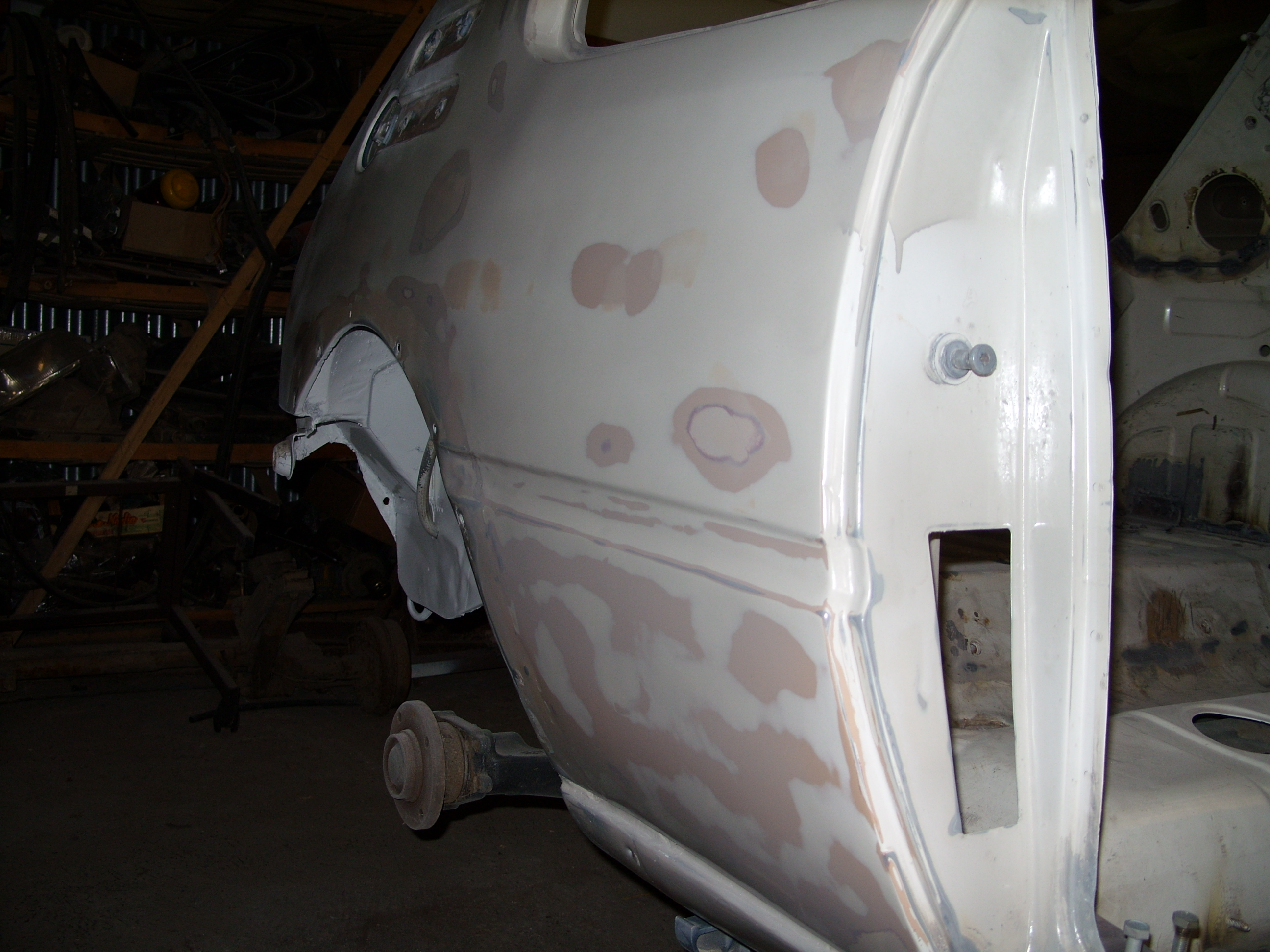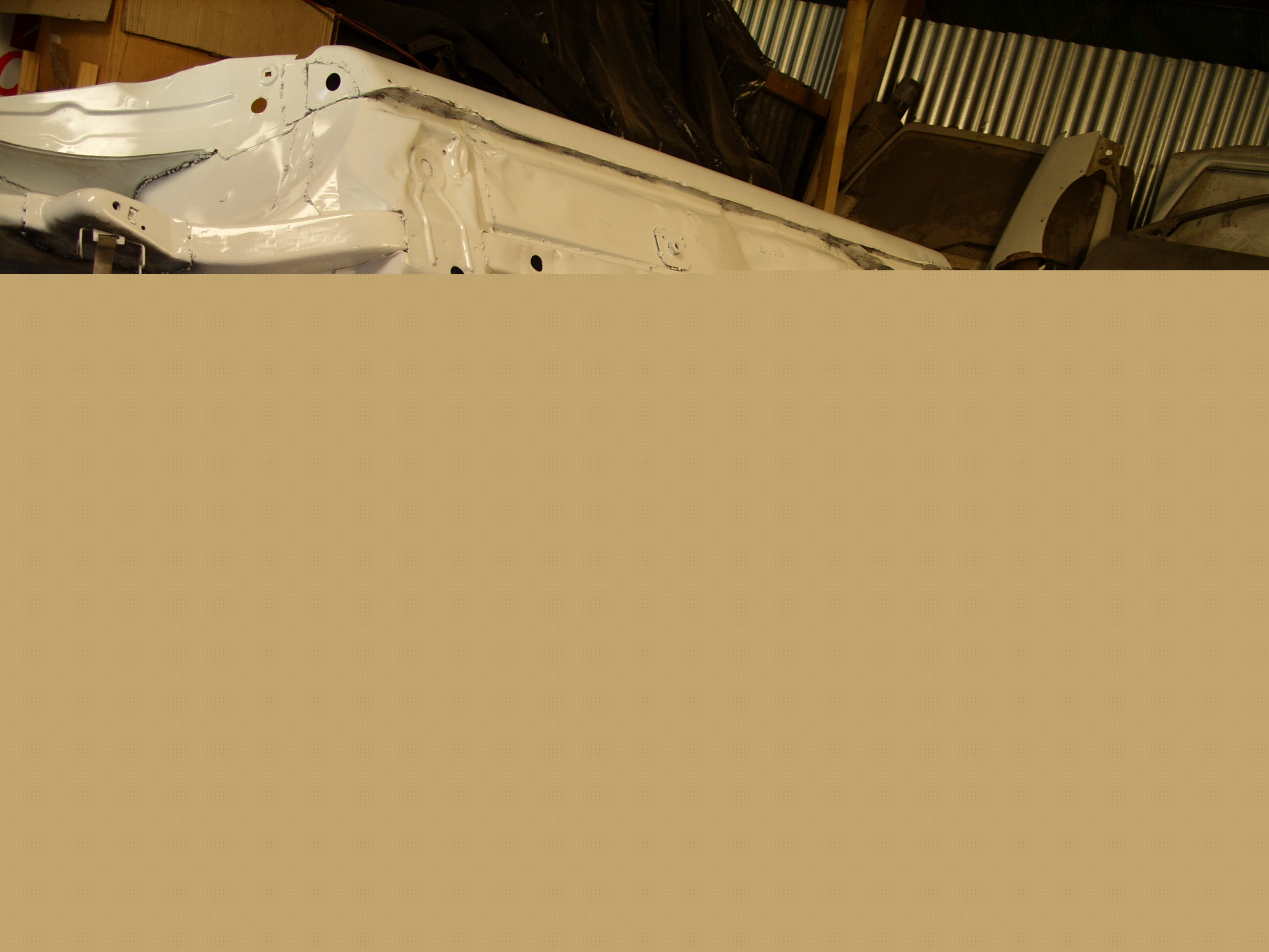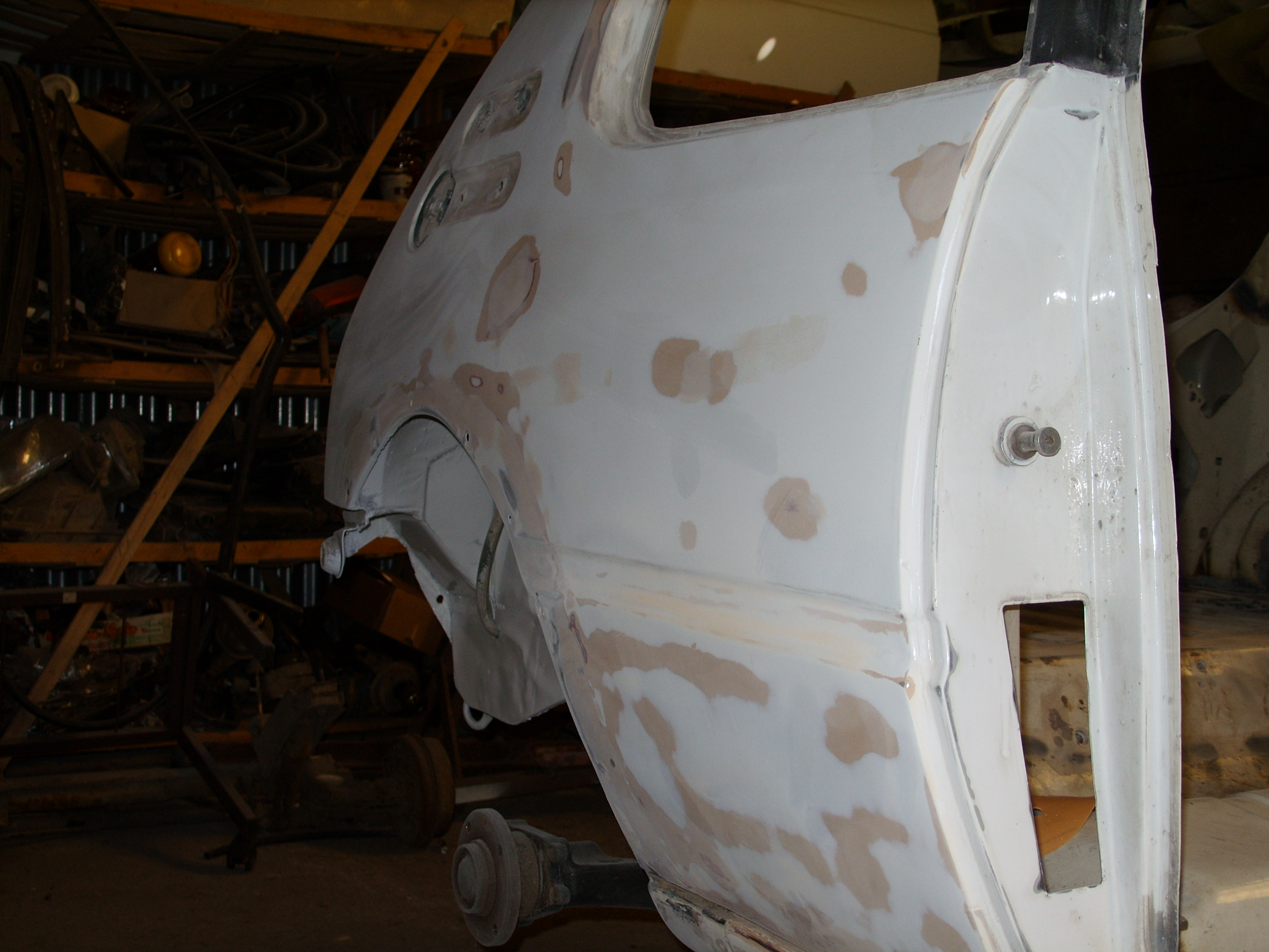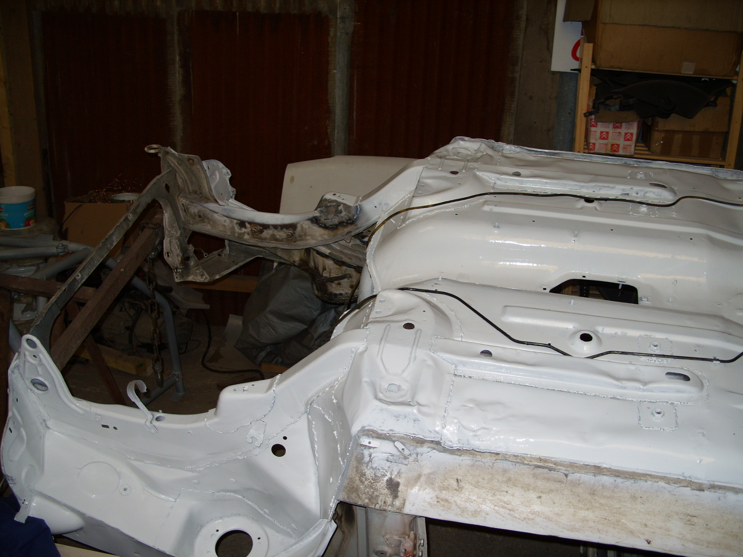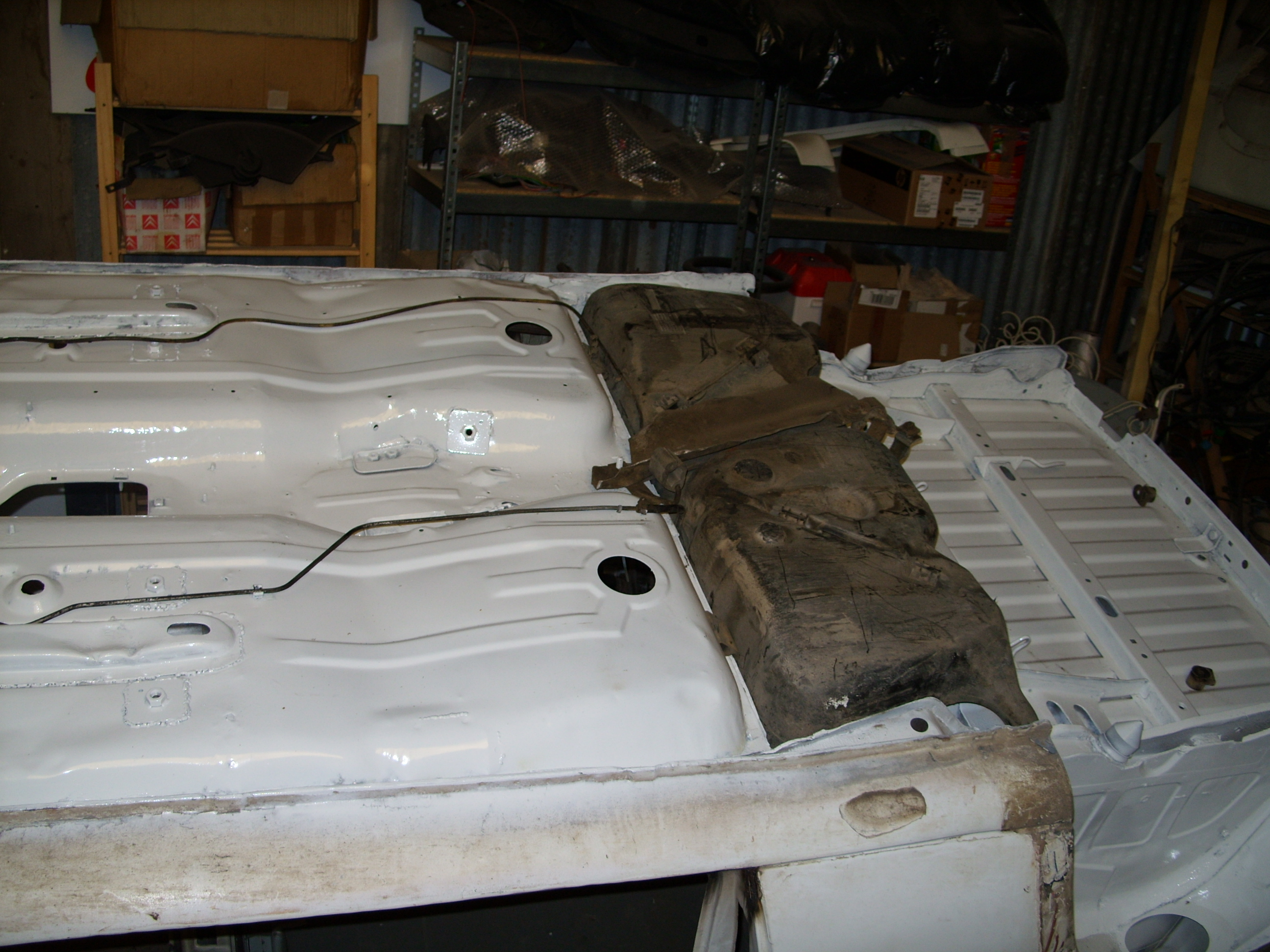 sinon aujourd'hui remontage reservoir et durite ainsi que le train AR, meulage de tout les bouchonnage du pavillon, ponçage exterieur de la caisse afin de visiualiser les endroit a mastiquer, et enfin application d'un produit de protection sur les soudures et endroit meulés.