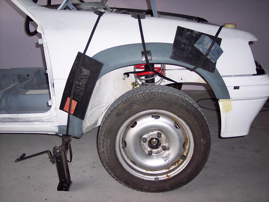 Monter des vis a tête fraisée en inox sur les ailes puis y mettre une noix de joint de carrosserie sur la tête en ayant donné la bonne longueur aux vis, écrou et contre écrou pour ajustage, ensuite venir plaquer l'extention et la sangler de manière à ce qu'elle soit plaqué contre l'aile , ensuite une fois sèche (24h au moins) la démonter et parfaire le collage avec le joint carrosserie ou à la résine....