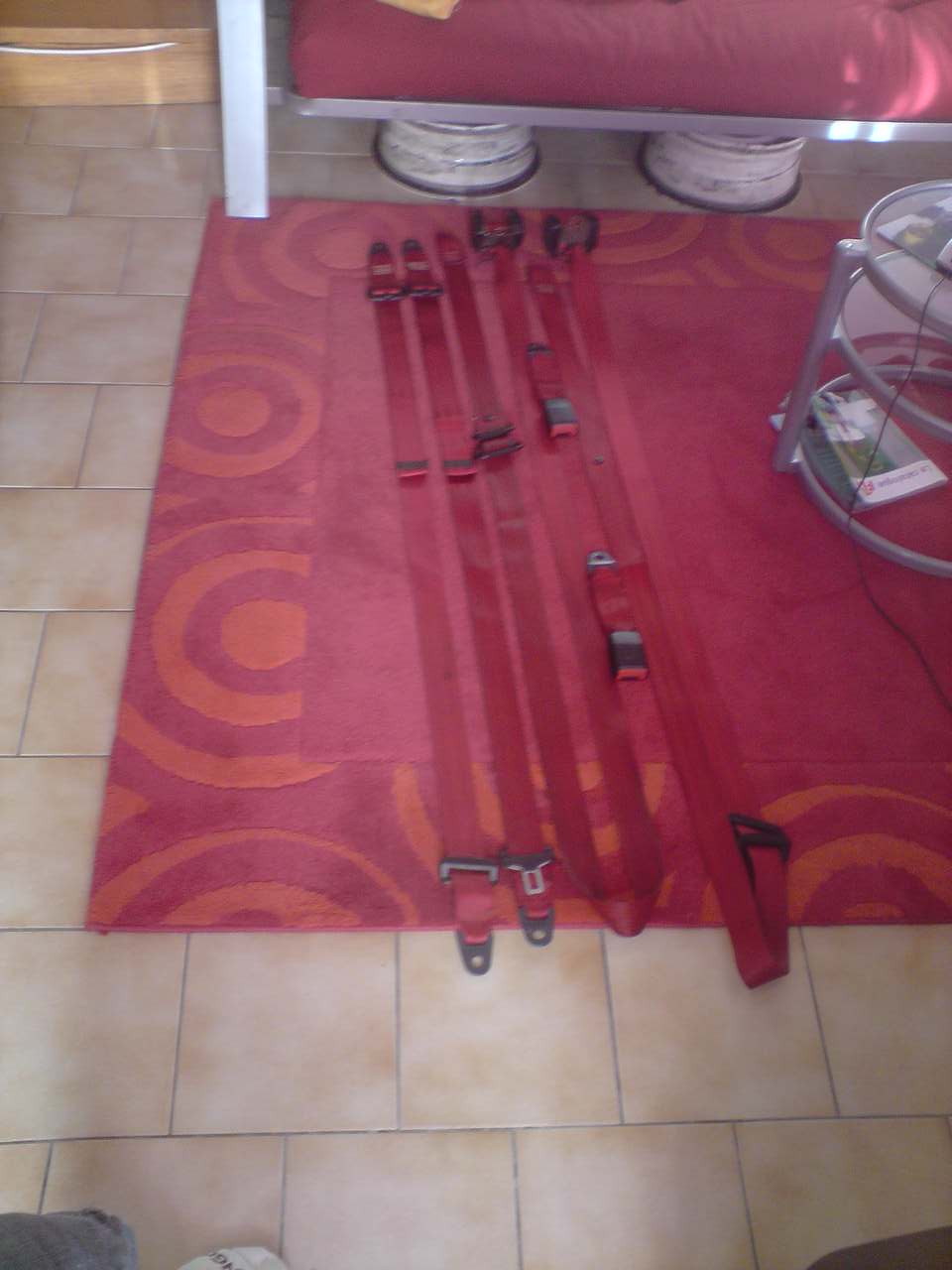 J'ai des fotos de l'intérieur aussi. j'ai lavé les ceintures trois heures dans du savon de marseille puis a la patte arma . Le résultat est bien sur pas si mal! c'est rouge vif maintenant!!
