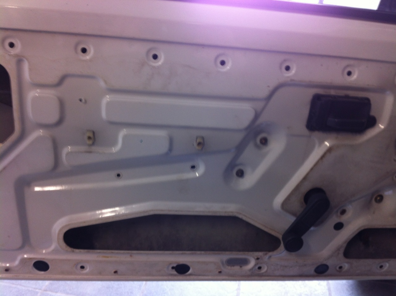 premièrement, il faut retirer la garniture et tout ce qui va avec et retirer la coulisse qui est tenue par 2 écrous, juste en dessous de la poignée.