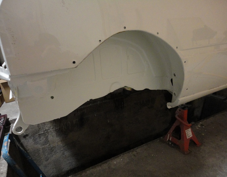 Donc la voici quand elle est revenu de peinture et le début des achats de pièces pour la remettre à neuve. Puis la réfection des passages de roue et du dessous de caisse avec décapage puis traitement anti rouille et enfin peinture.