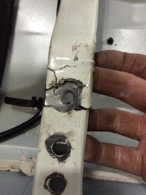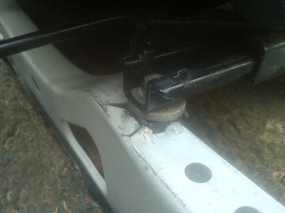 -1 des 2 fixations du siège conducteur complètement arrachée. Presque découpé proprement