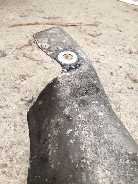 Donc démontage; et effectivement la pièce est mal en point; une fixation est restée au châssis...