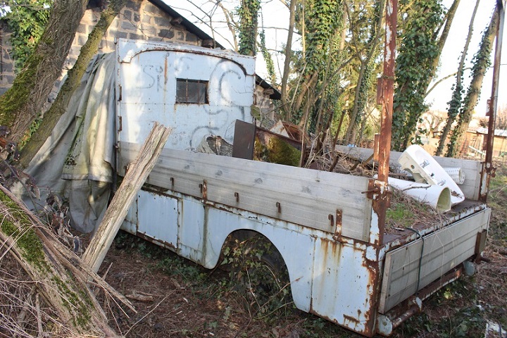 voici une épave d'un J7 ou J9 qui dort depuis longtemps au bord de cette ancienne route nat 6 appartenant surement à l'époque à un garagiste ou à artisan