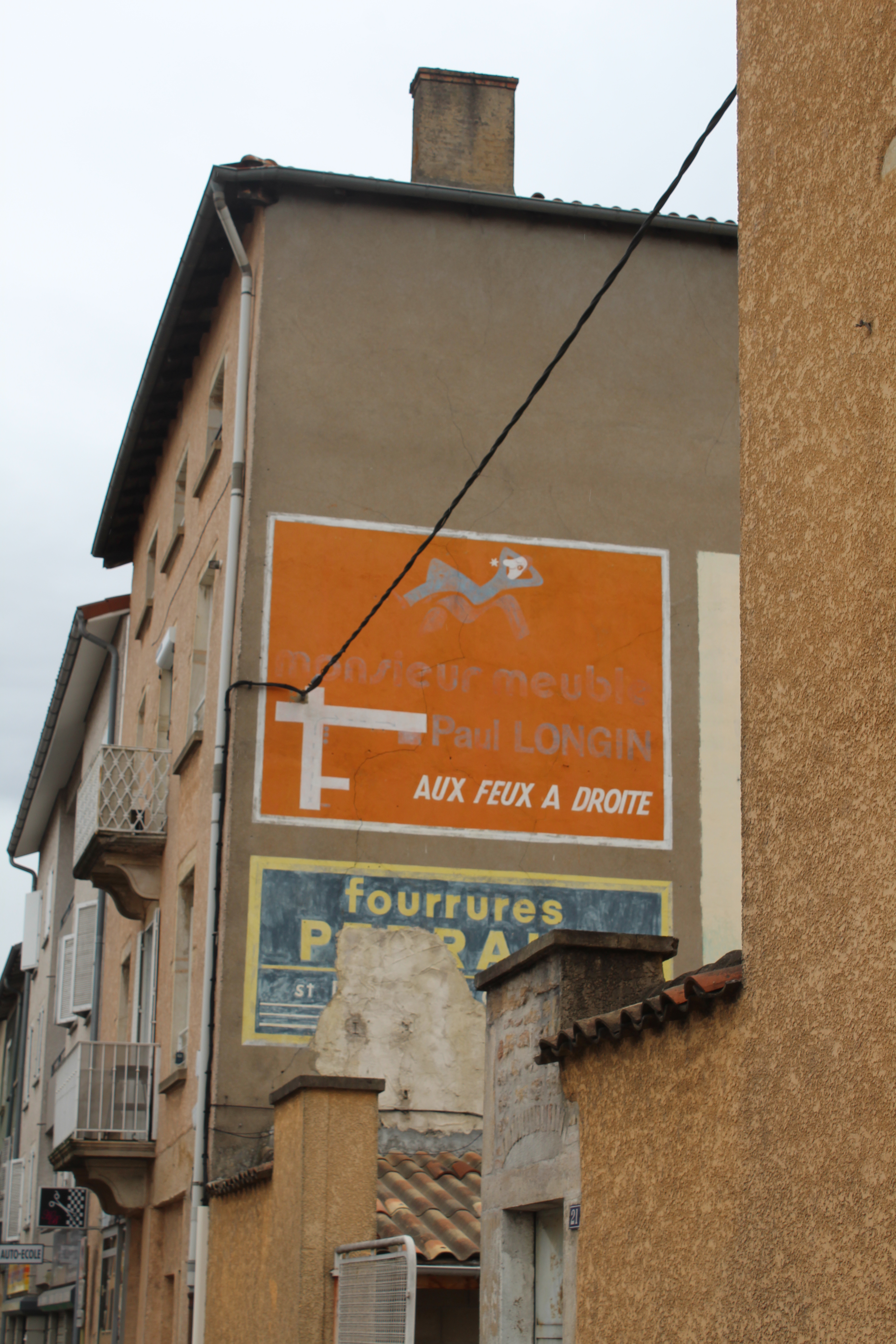 Voici d'autres photos de façades peintes d'anciennes publicité qui on survécu aux épreuve du temps ,trouvées toujours au bord de cette ancienne nationale 6 ou tout proche