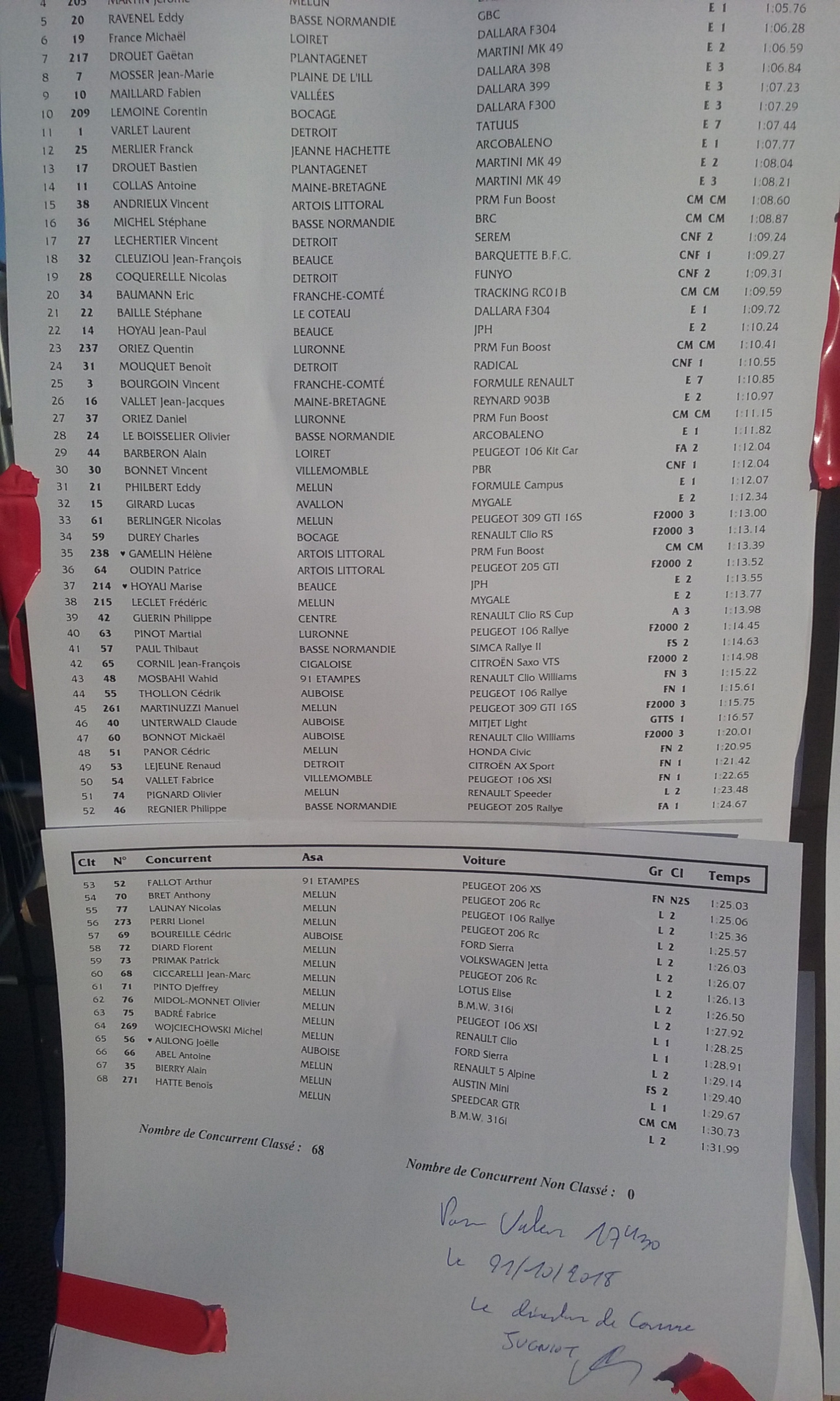 Après discution amicale,il se rend compte de la boulette et finalement se fait reclasser en Loisir 2 (au delà de 1400 cm3 atmo) ,du coup on est plus que 3...