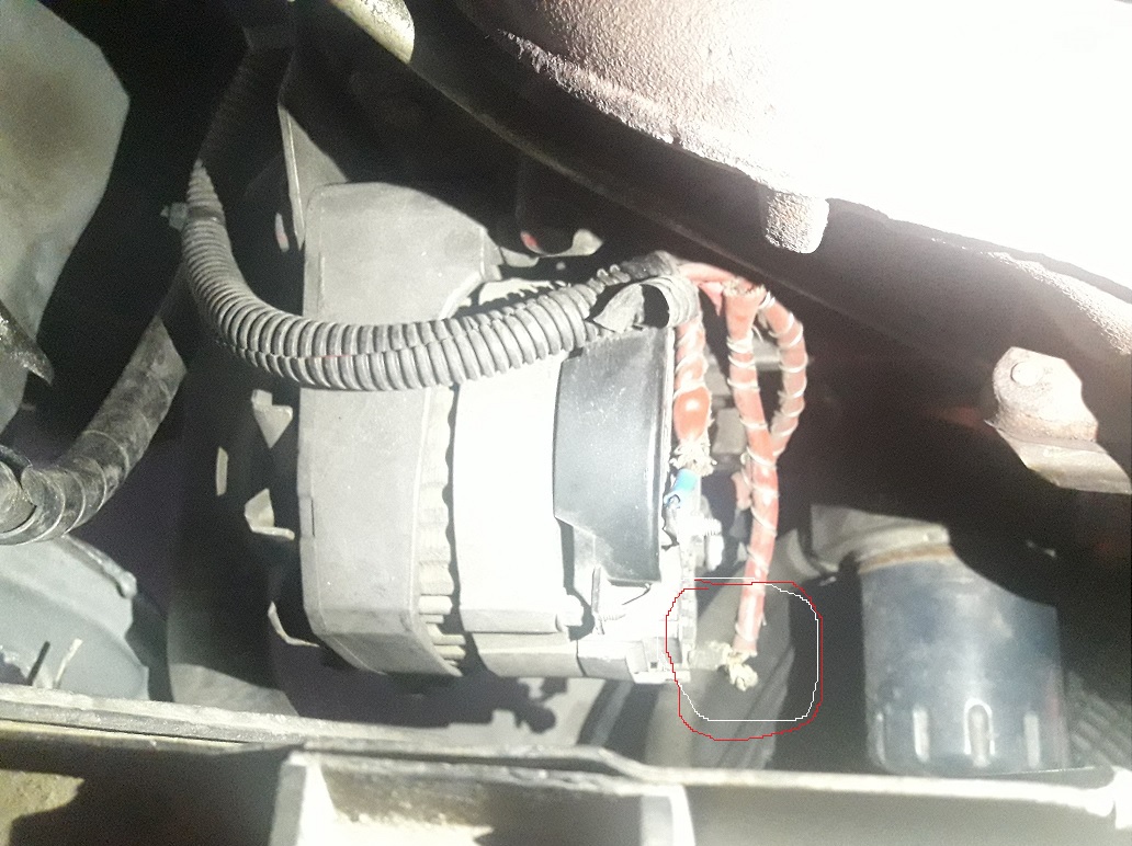 La photo, est de mauvaise qualité, mais si vous regardez celle-ci, et le fil entouré, et branché tout en haut.......Je vous le donne en mille, c'est le fil qui se branche sur la sonde de pression d'huile.......Costaud le truc .........Mais beaucoup plus cocasse, quel fil était branché sur la sonde de pression d'huile......bien sur, vous n'allez pas trouver........pour pas que vous ayez mal à la tête la réponse est.......UN FIL DU VENTILO......