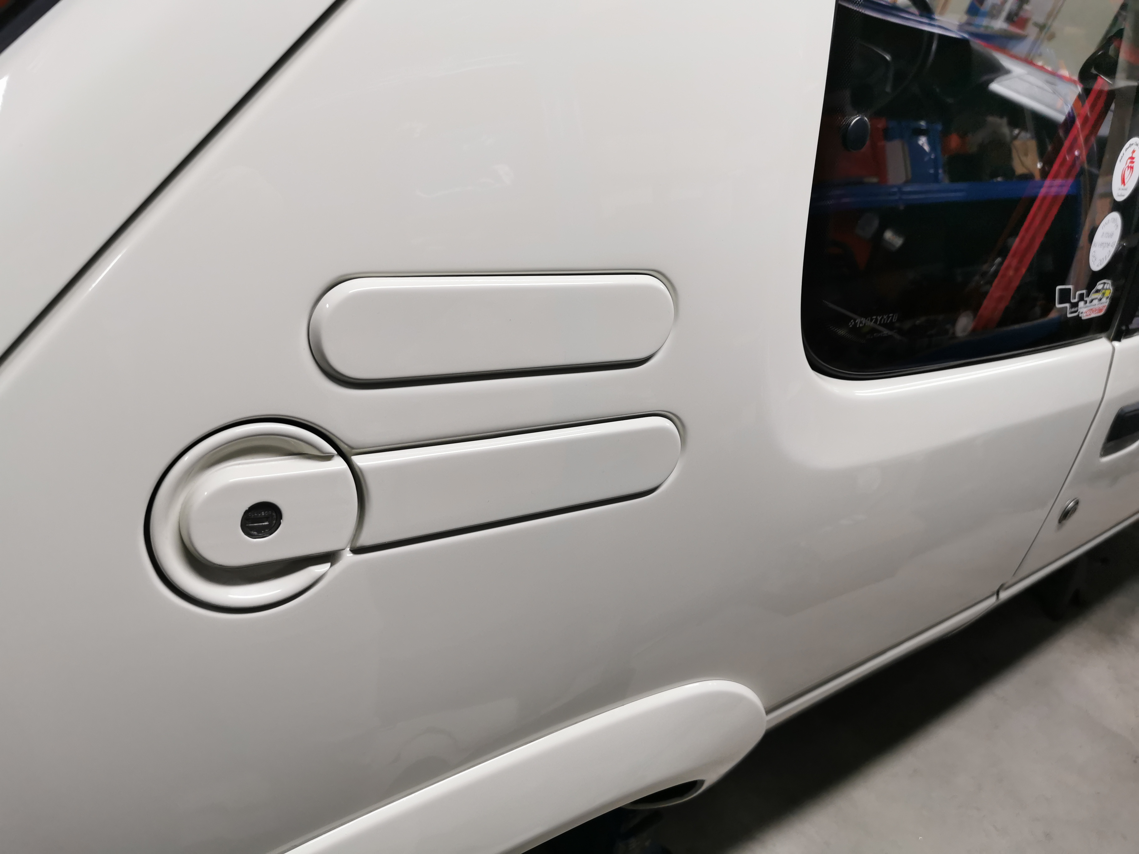 la pose des enjoliveurs de custode tout neuf qui avaient été peint en même temps que la caisse