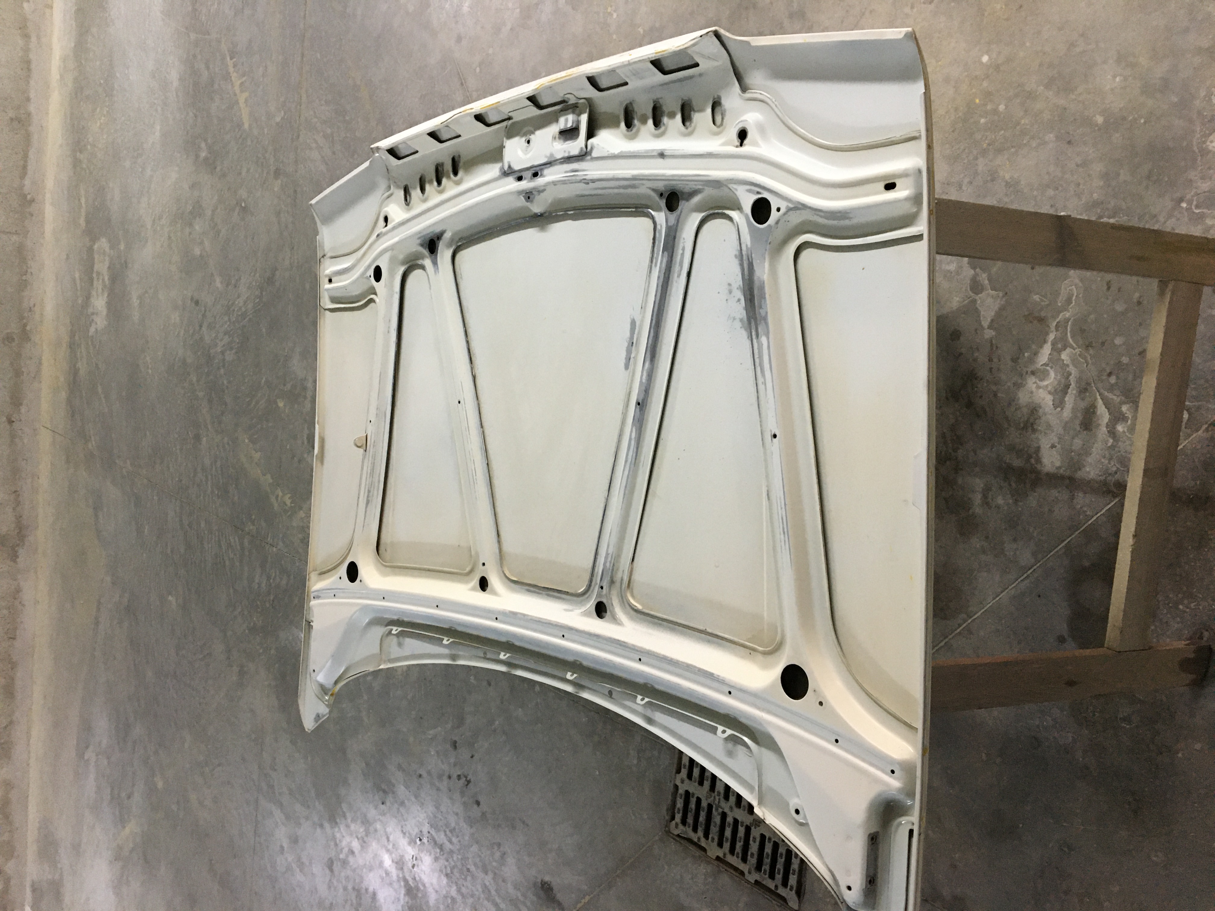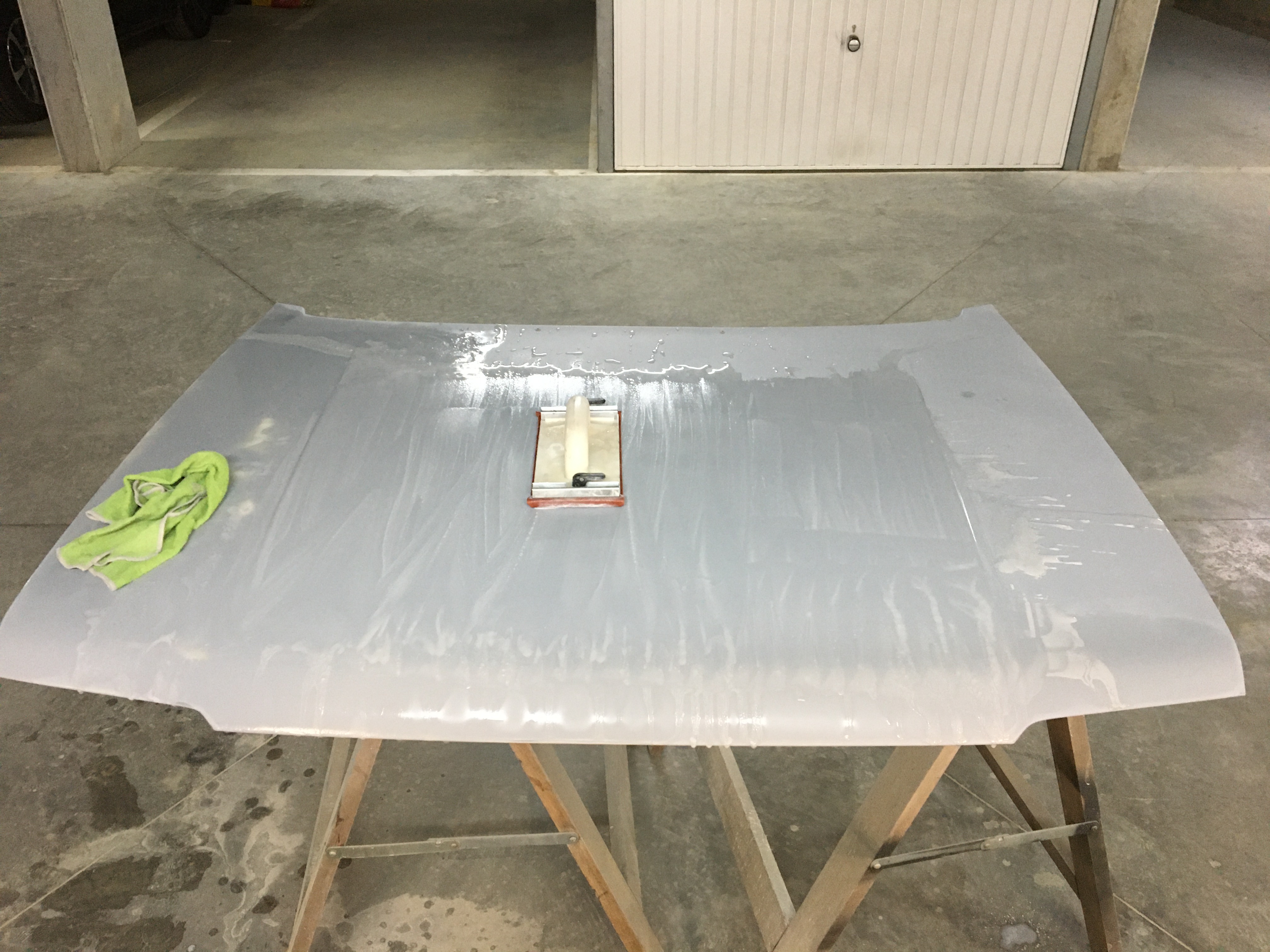 Ponçage du capot. J’ai en neuf mais je voulais lui conserver son capot d’origine.