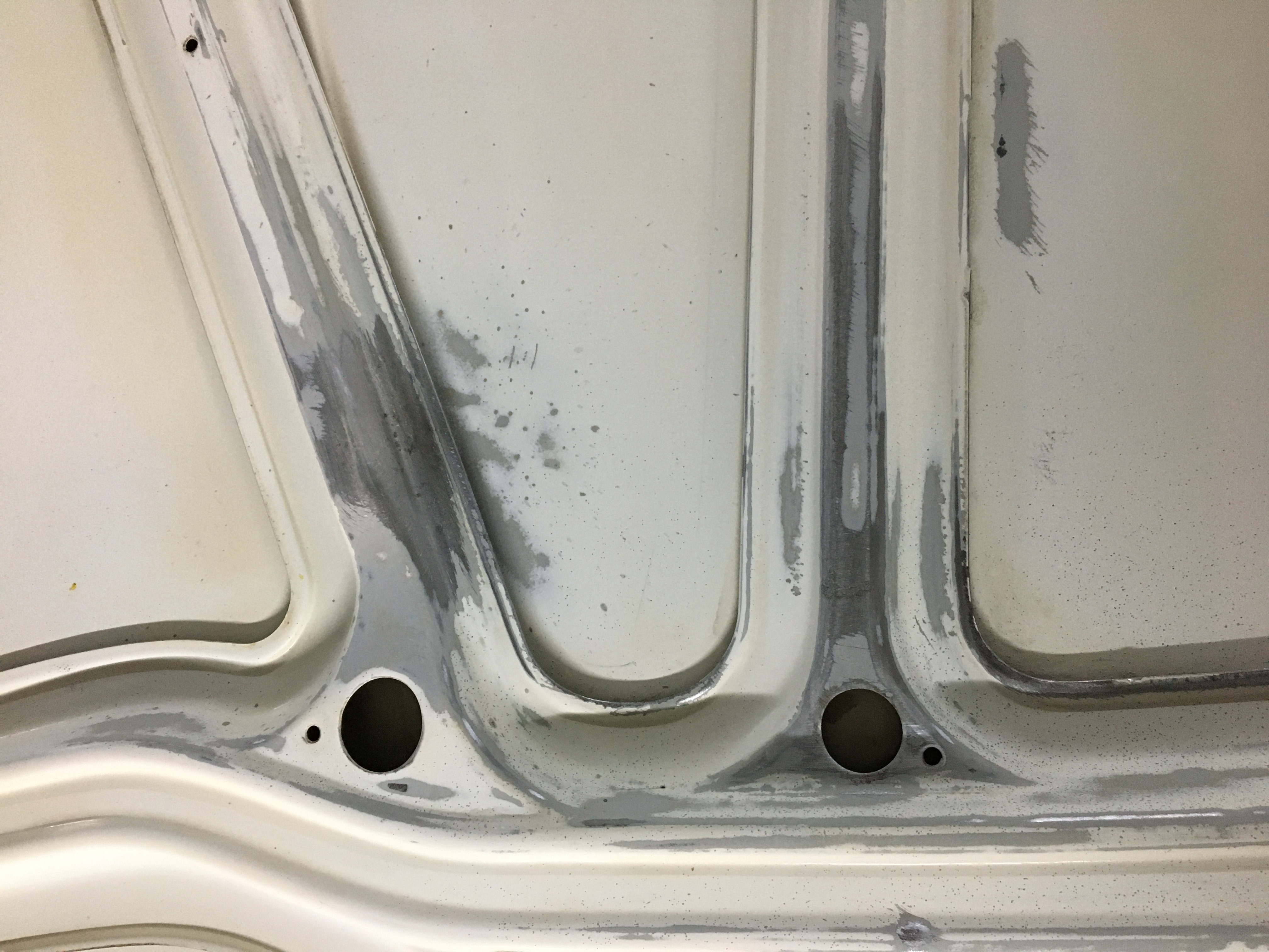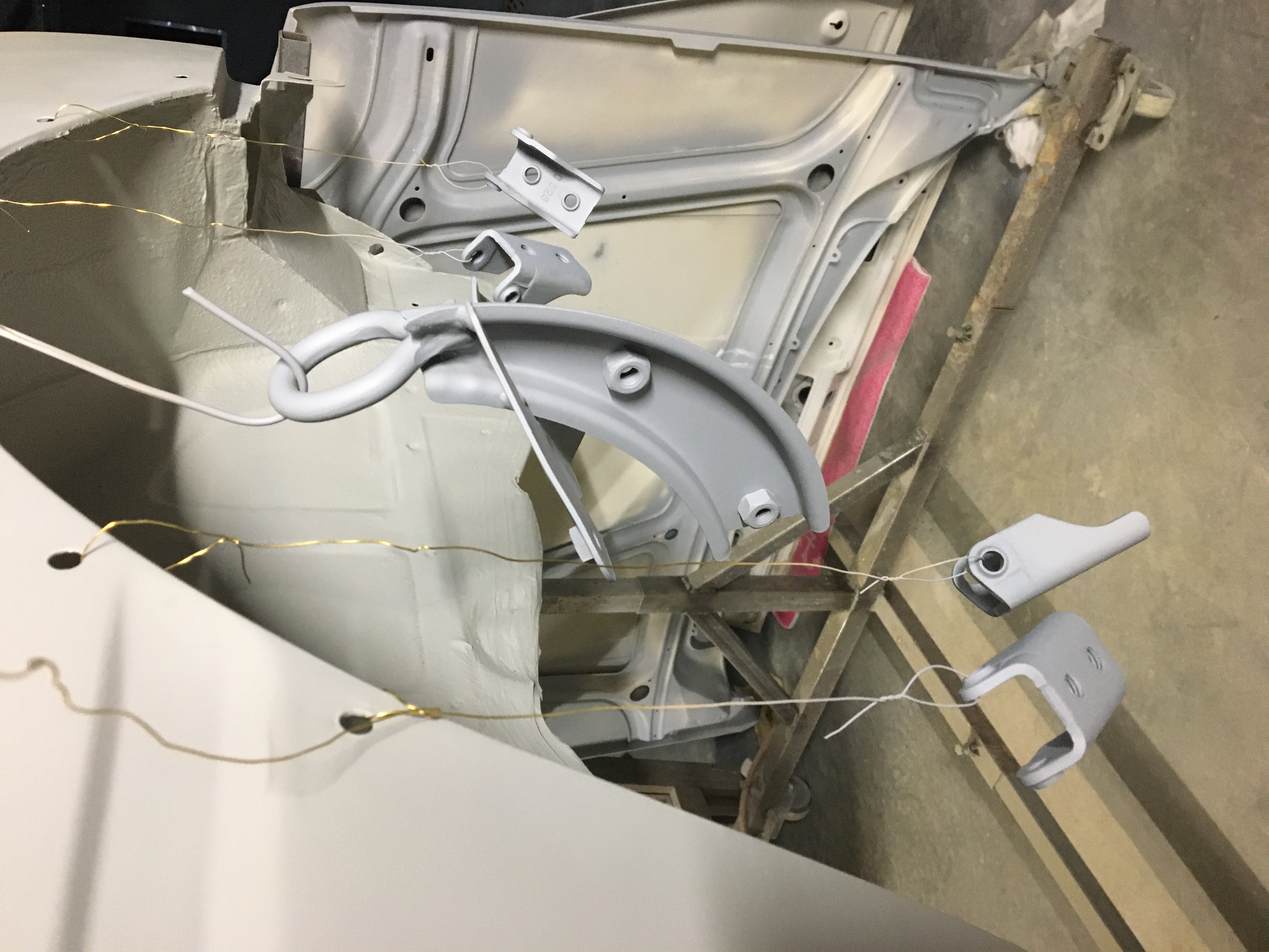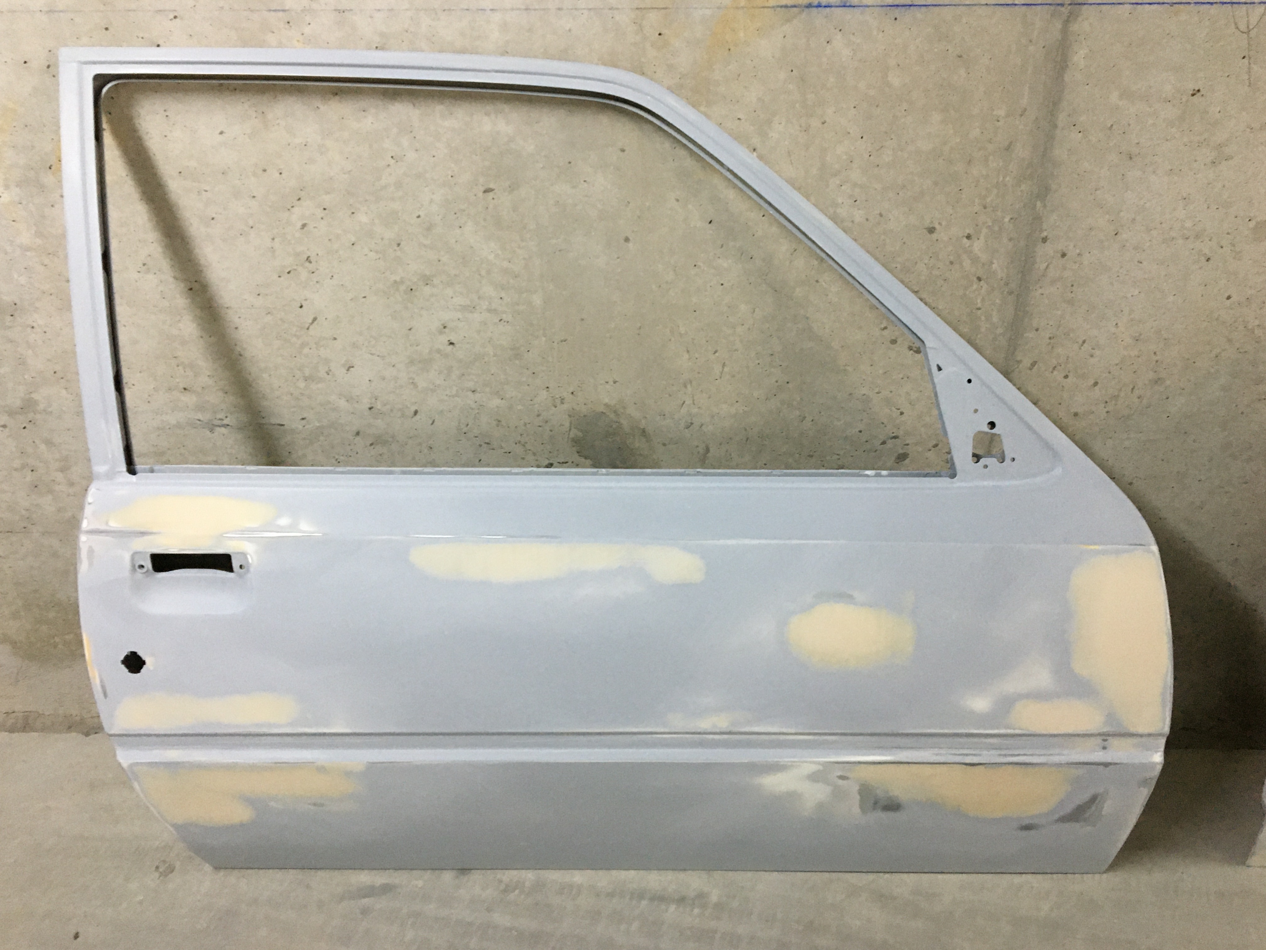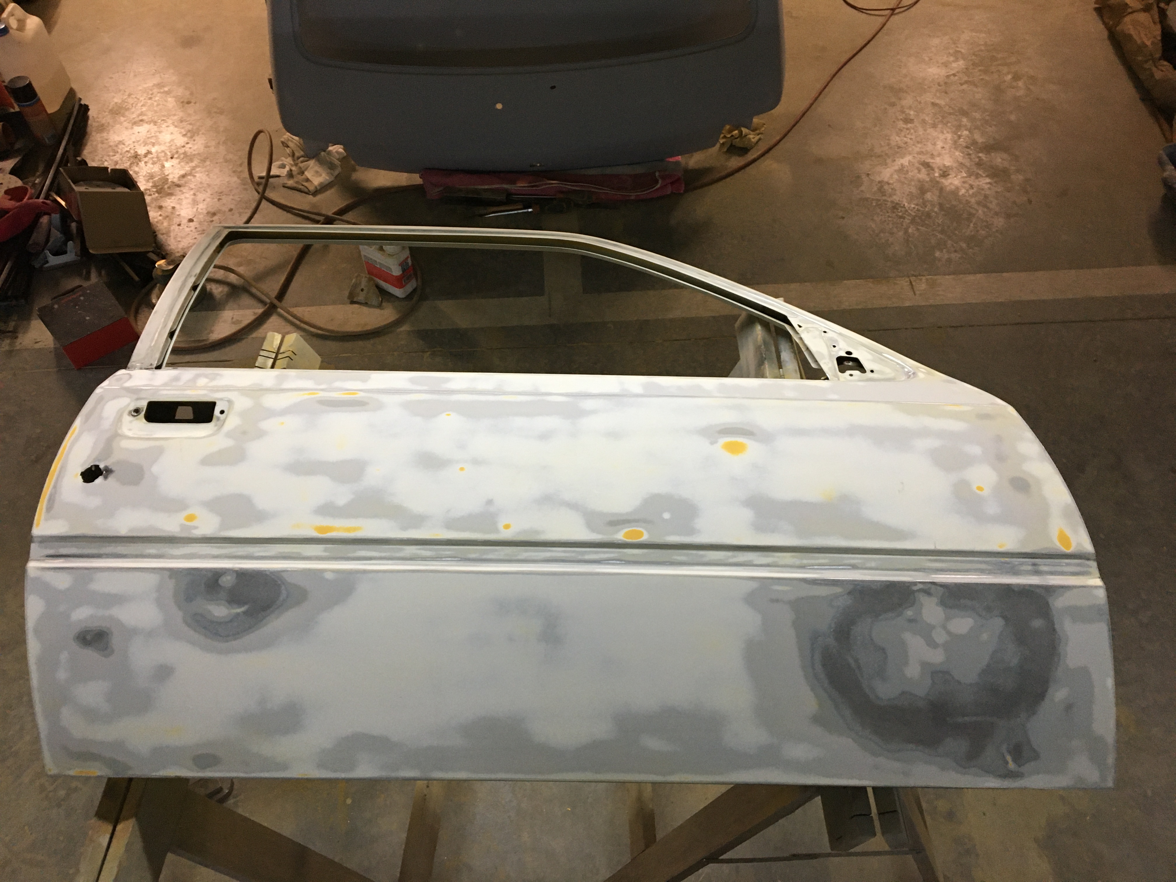 Le capot et le hayon sont prêts à peindre. J’ai aussi apprêté quelques bricoles. Je me suis attaqué aux portes. Et là gros job car elles ont bien mangé !!