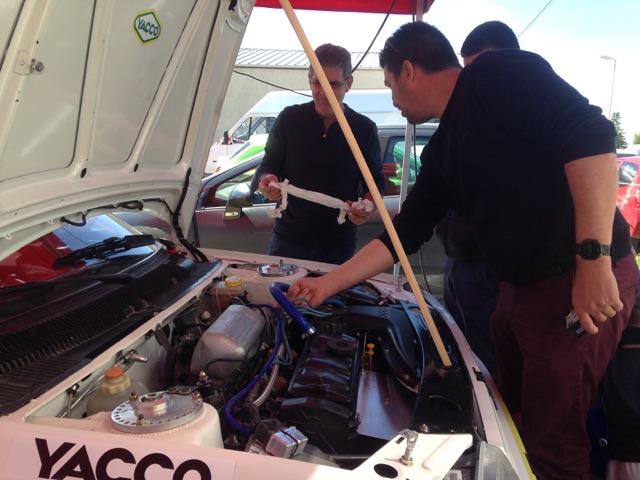 - Première assistance: Thierry, l'oncle à Estelle, gère l'assistance avec mon pote Gaëtan, mon grand frère Eric est là, ça me rassure aussi, il commence à me conseiller. Mais pas grand chose à faire sur la voiture, juste monter les roues slick.