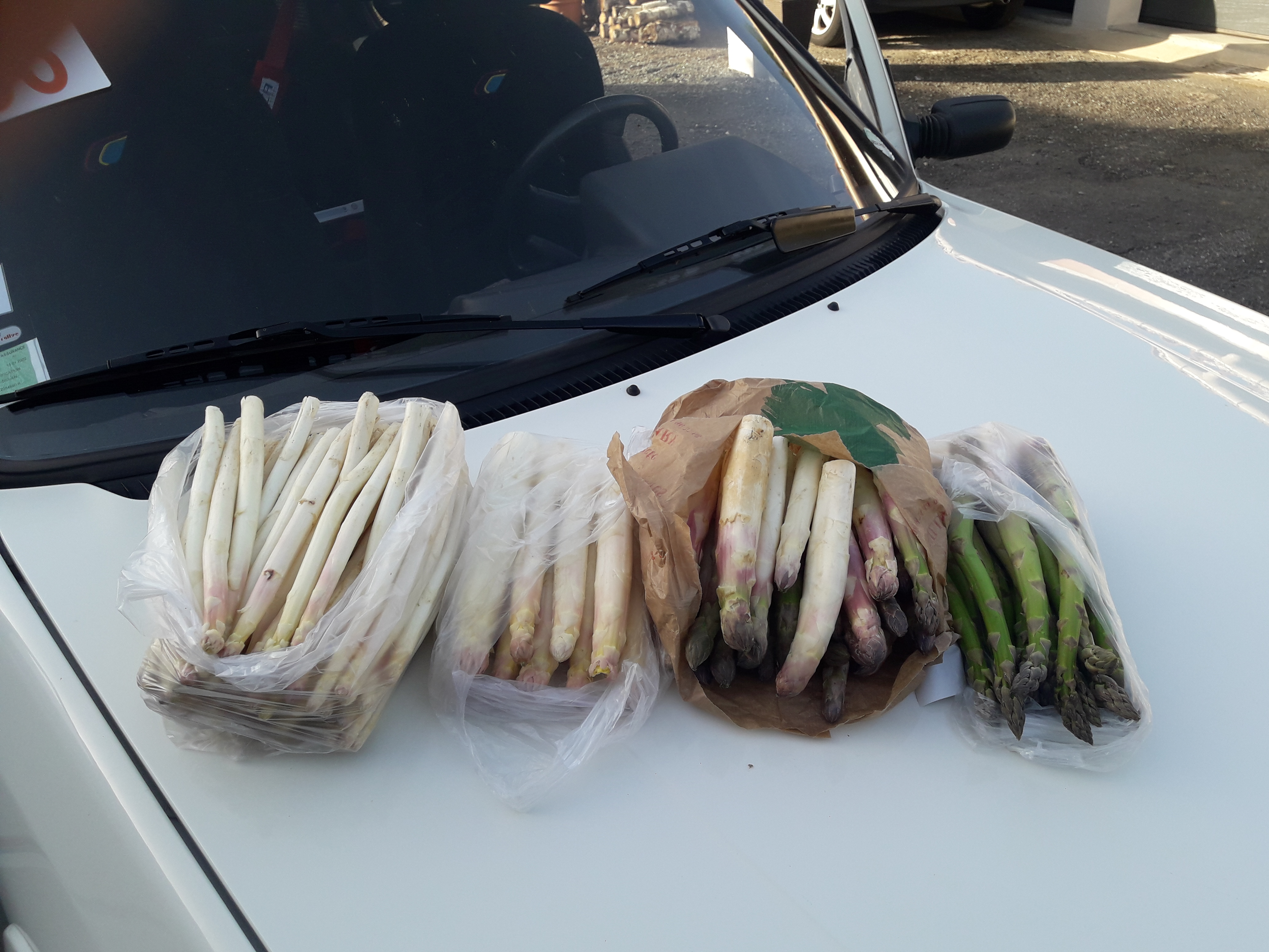 Une partie du chargement.......Et devant les asperges, j'ai eu une petite pensée, pour 0livier, l'Alsacien qui nous mets plusieurs fois par semaine des photos d'asperges qu'il déguste avec de la mayonnaise........