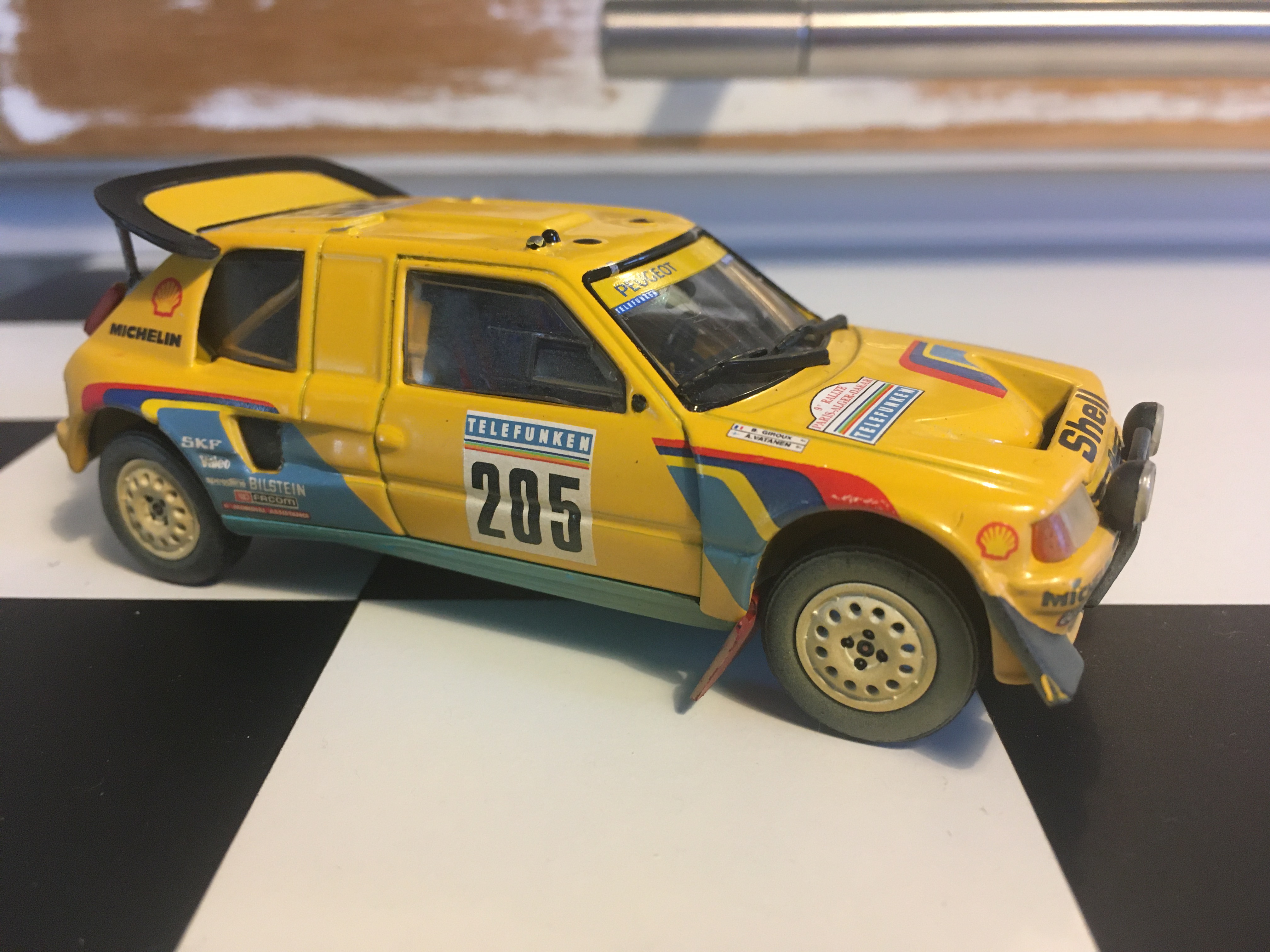 la 206 T16 "Rallye Raid" fait +30cm entre la portière et la custode, pour placer des réservoirs à l'échelle du Rallye Raid.