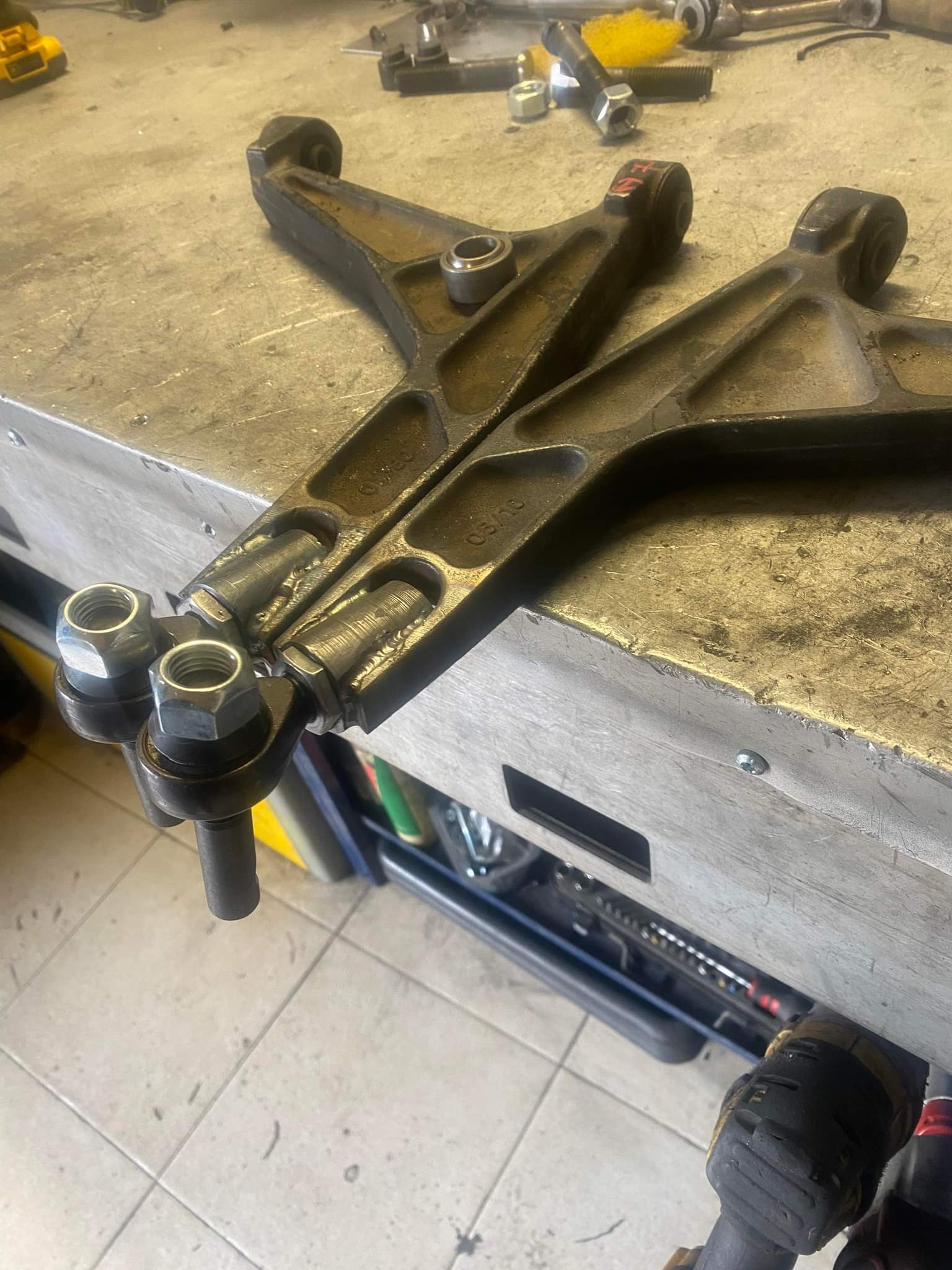 J'ai déjà des doublures soudées au dessus que je vais laisser, les nouvelles je vais juste m'en servir de contre-plaques dessous sans les souder (en attendant elles me servent de gabarit de percage )
