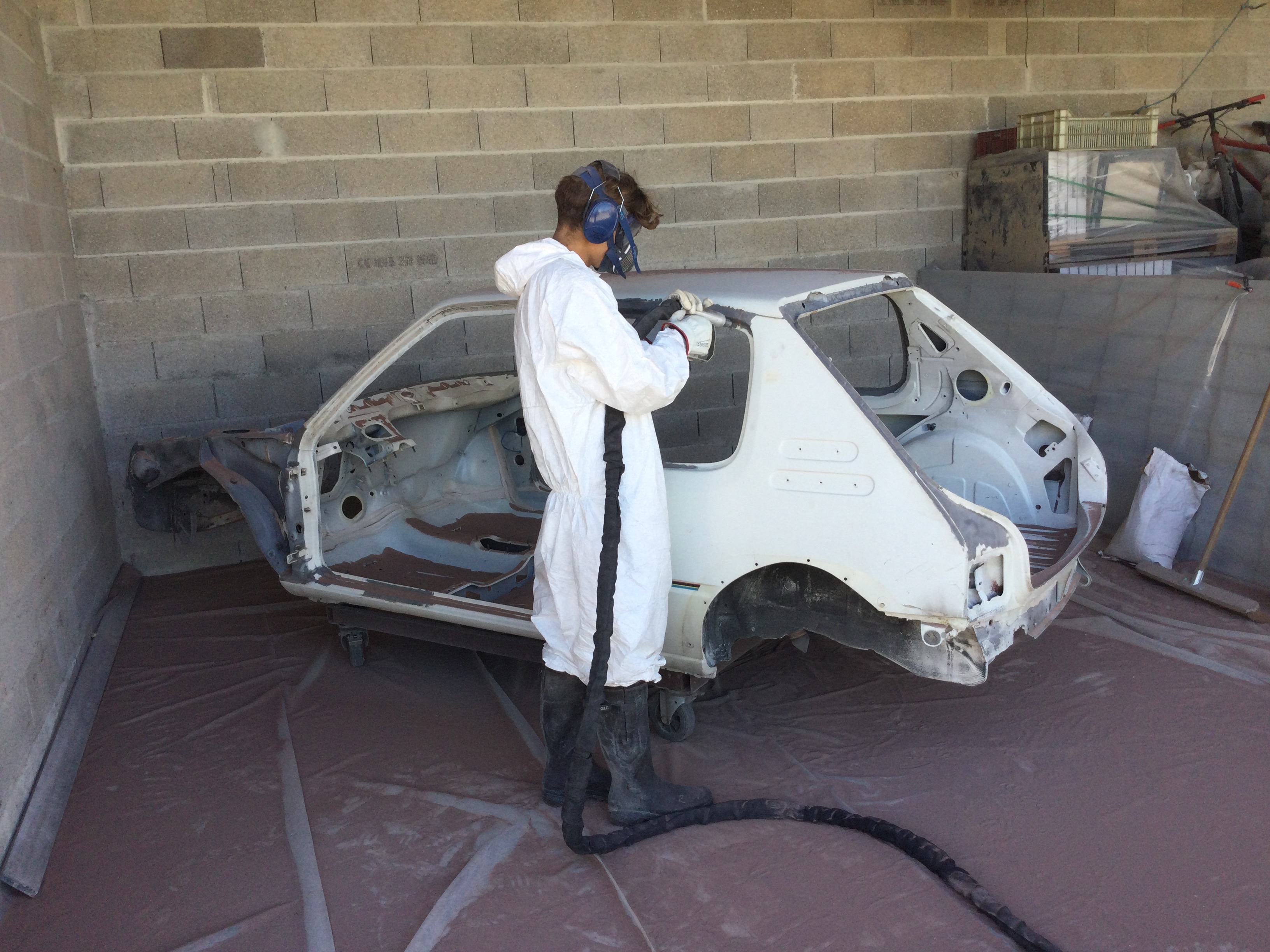 Je continue de vous dévoilez ce projet.Le tôlier a attaquer ... peinture coté moteur et intérieur de caisse.