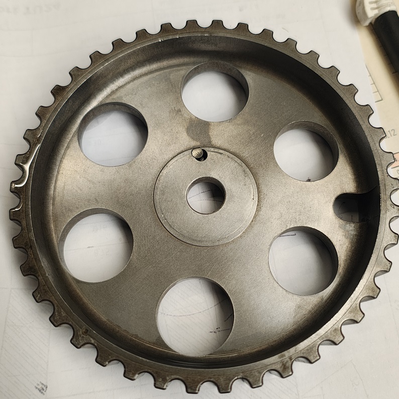 Ergot de la poulie modifié, diminué en épaisseur et compensé par une goupille acier coller au loctite scelroulement.