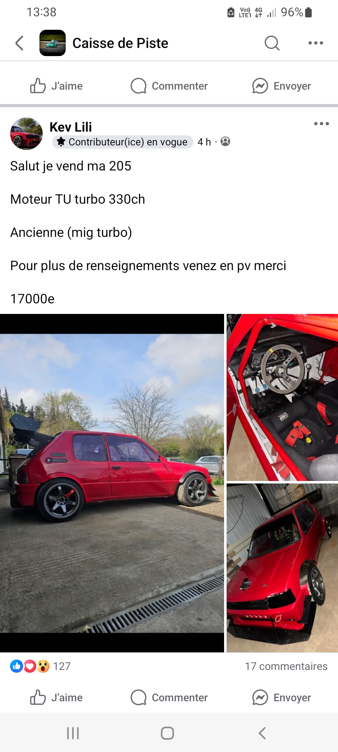 Il nous suit sur la page Fb "Entraide......" et il a même cité "JeanLuc13" la "référence en 205 Rallye".