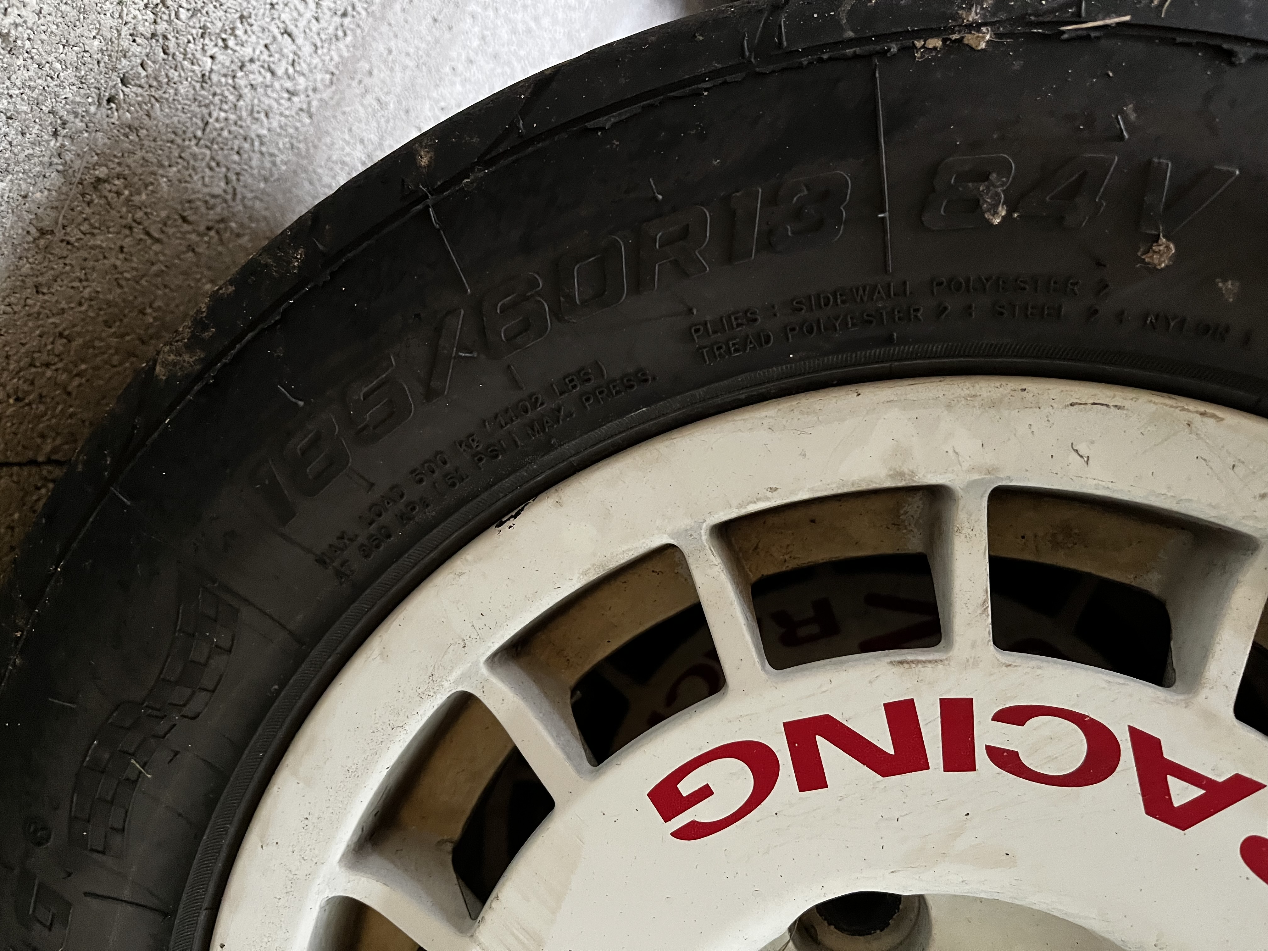 Tout d’abord des jantes OZ Racing équipés de pneus, 165 /60 R13 Nankang NS2R 60% d’usure.