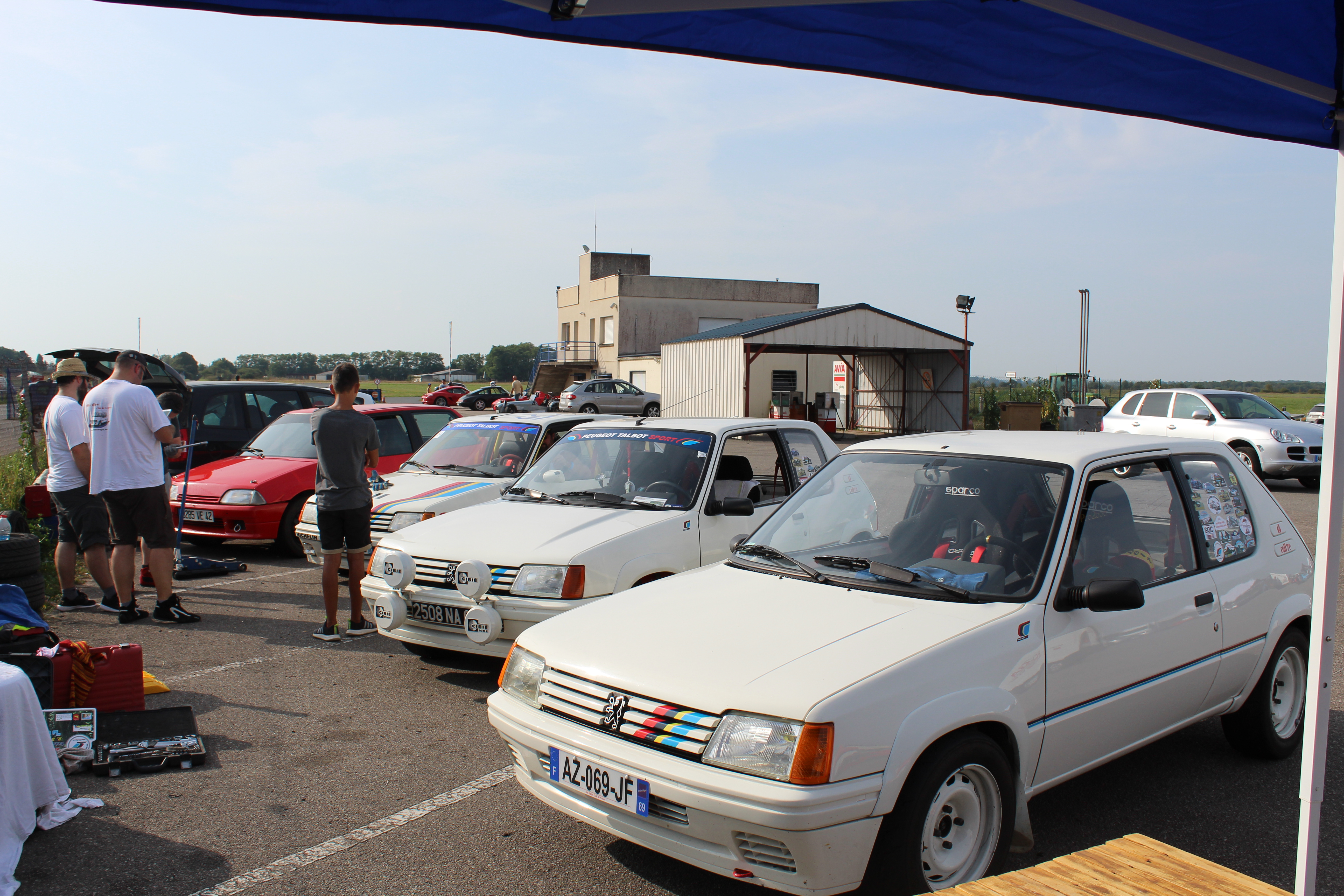 La suite avec le QG des 205 rallye, bien sûr de l'AX de Robbi et nos vieux pneus Michelin qui n'ont pas supporté cette journée surtout à l' avant gauche n'est pas Nico