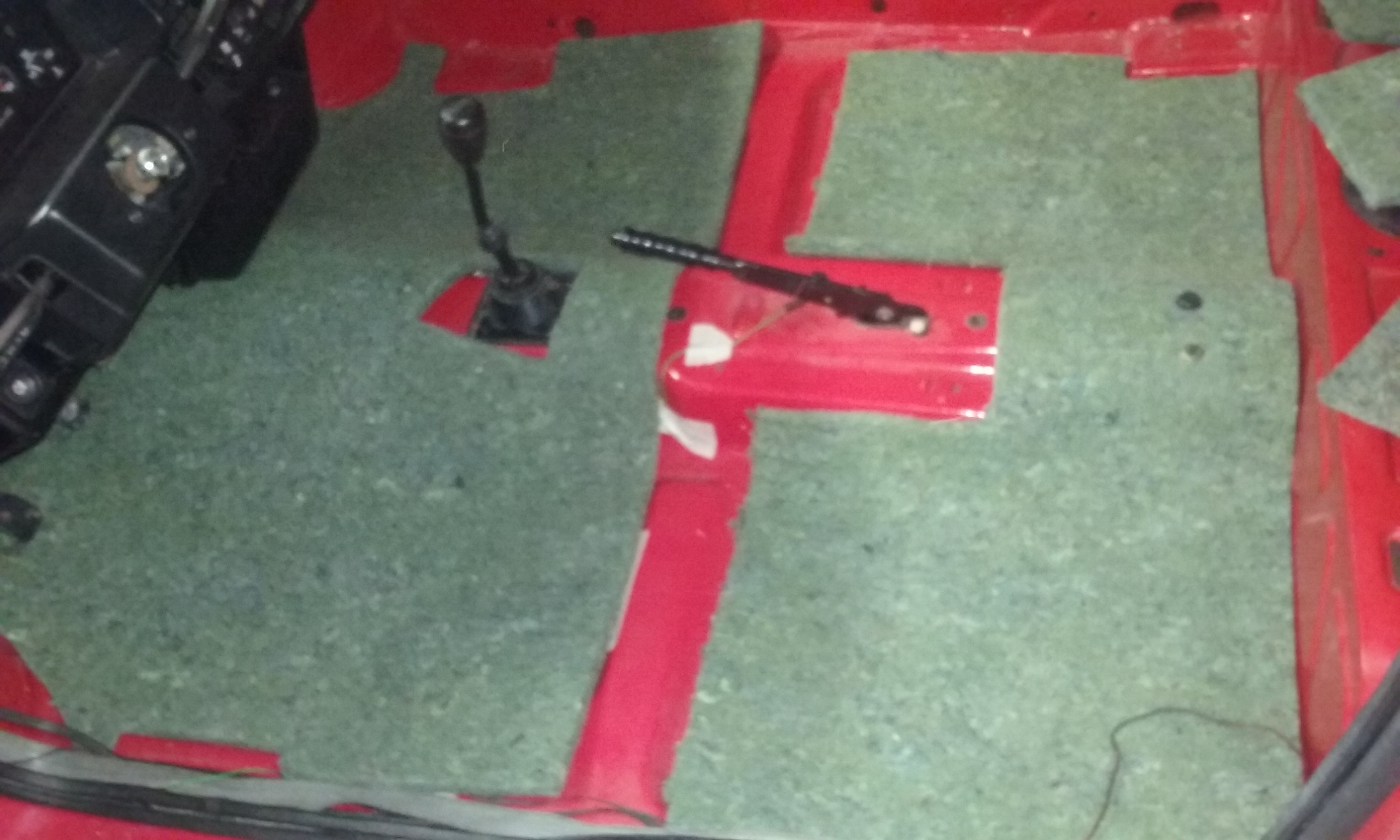 Découpe et pose des isolants sous moquette et pose de la moquette ,j'ai trouvé une d'ax gt ,ca va etre en mode rouge et noir(vive les années 80'