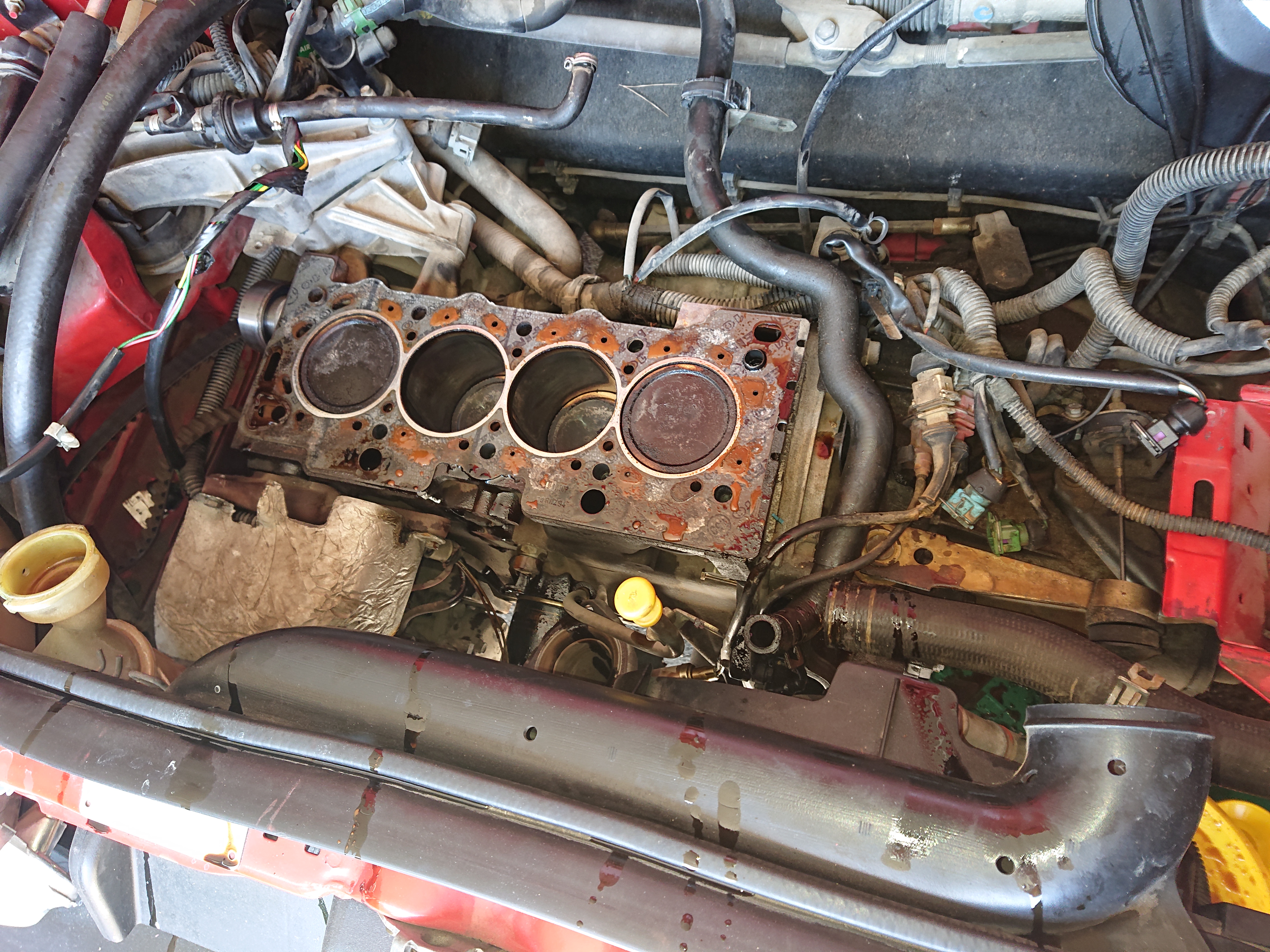 :angry: Après avoir perdu la matinée à faire le tour des grossistes du coin pour essayer de trouver un raccord de boîtier de thermostat (l'ancien est rongé par la rouille :crying:), j'ai commencé à remonter hier après midi :