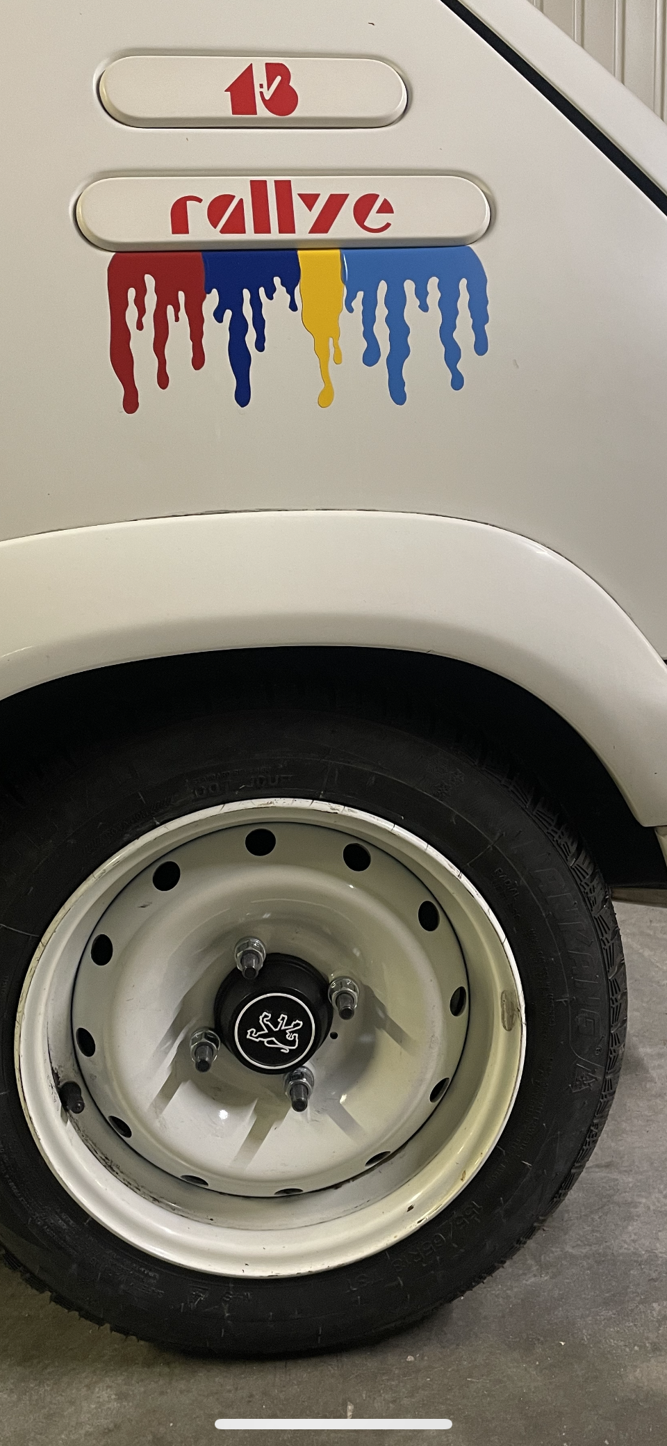 MERDE !!! Je viens de m’apercevoir que les roulettes en 13 ne sont pas des vraies roues de 205 Rallye full origine !!! Y’a un trou !!! Sur un tel véhicule de prestige ça la fout mal !