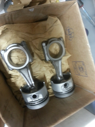 Il a tout Ce qu'il faut : 4 chemises neuves, 4 pistons neufS, segmentS, coussinetS, plusieurs jointS de culasse, il me donne aussi 4 pistonS montéS sur bielle, etat impeccable , :ok: