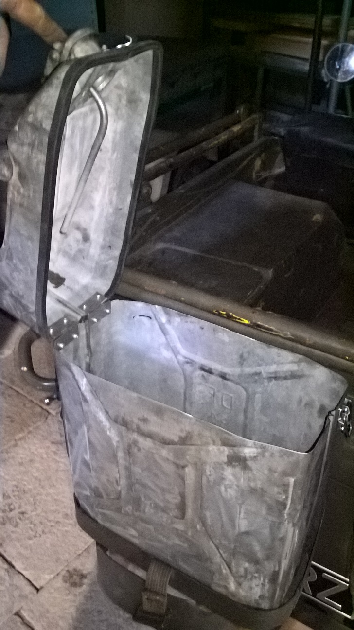 En attendant, je cherchais un moyen de transporter quelques outils, chiffons et autres nécessaire de balade. Jusque là, je n'avais qu'une caisse métallique qui se baladait au gré des bosses, même bien arrimée, elle finissait par bouger.