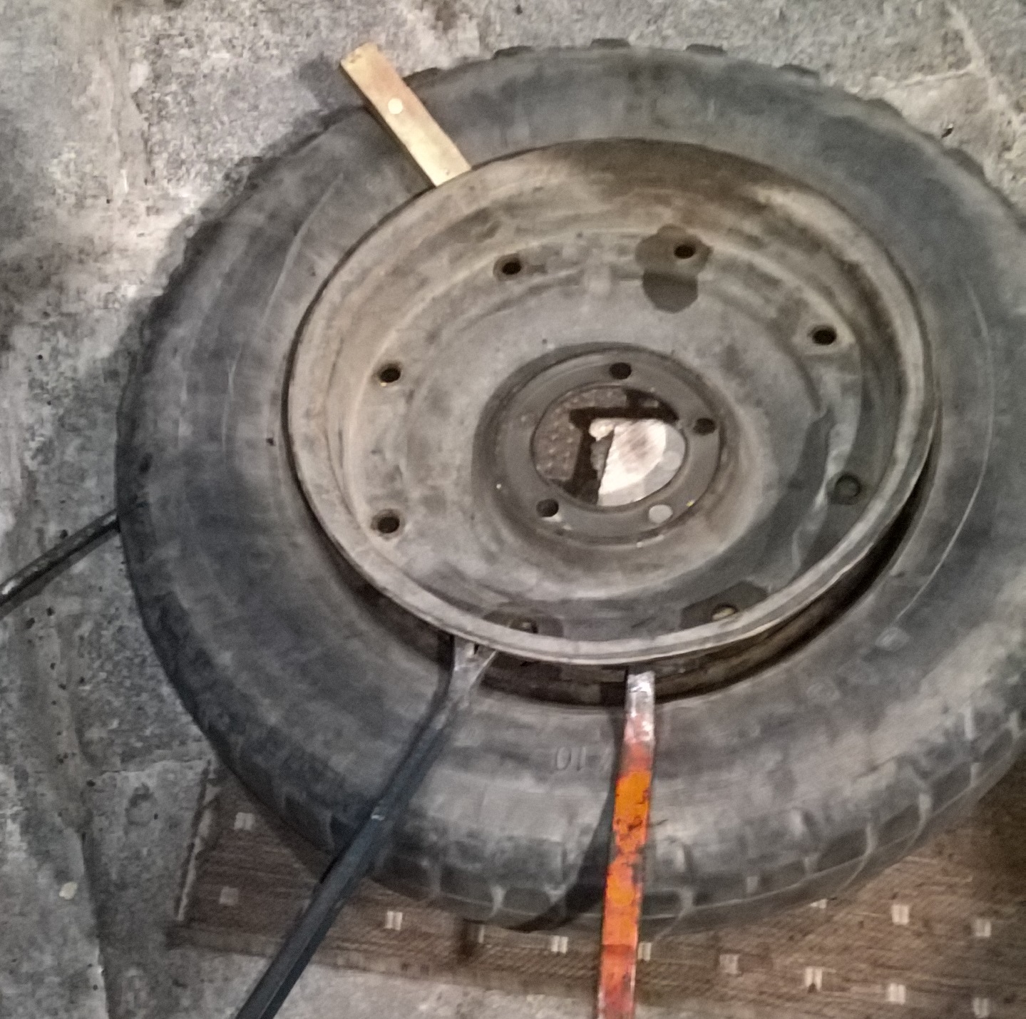 Maintenant, faut décoller les talons, collés par la rouille aussi : 1 heure à jouer du démonte pneu, cales, arrache clou, marteau