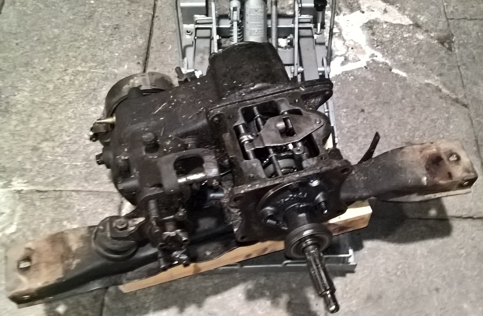 Dépose des boites vitesses et transfert. Pour le moment tout se desserre sans soucis particulier, faut dire que rien n'est grippé, l'ensemble est particulièrement gras