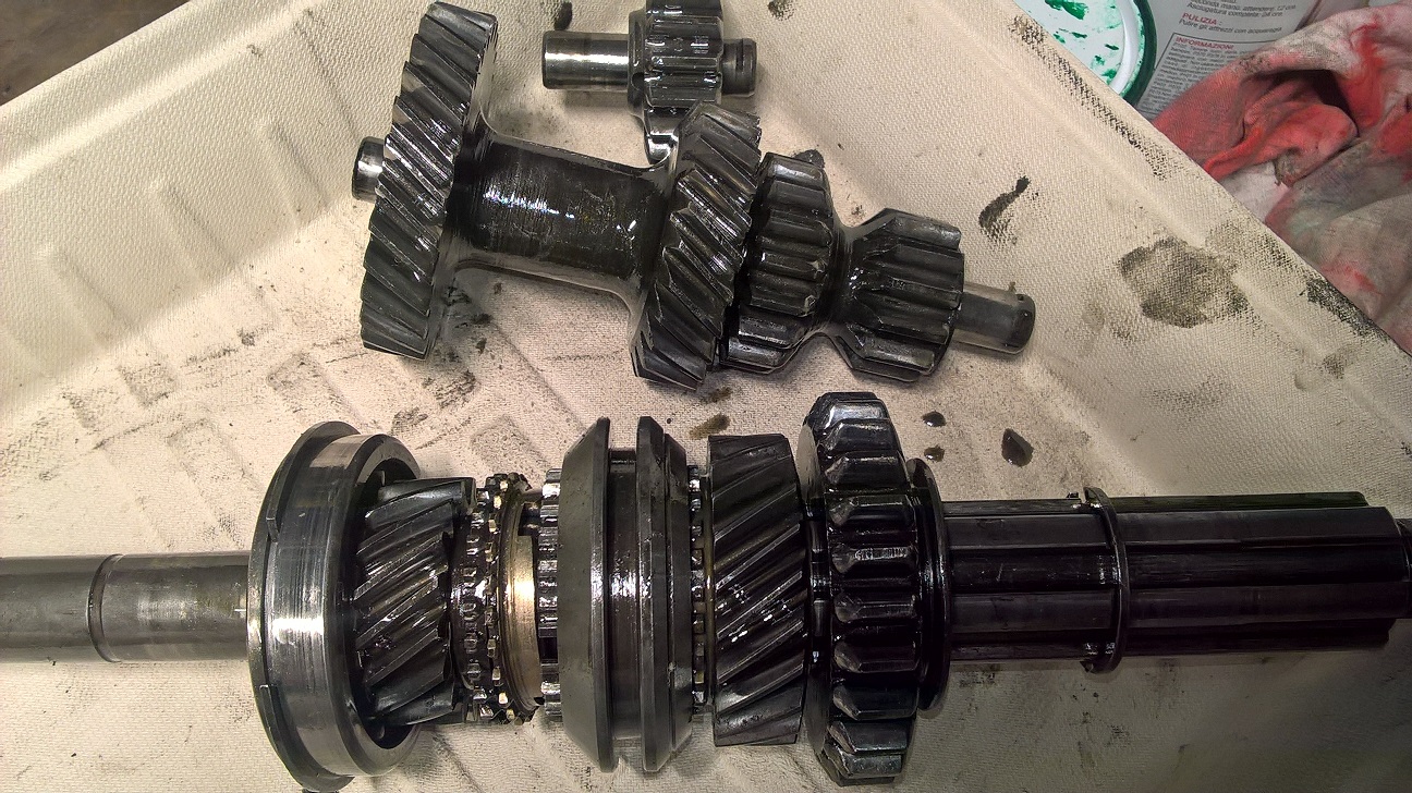 Je n'ai pas encore fait l'état des lieux précis mais j'explique déjà un soucis de bruit : les jeux axiaux et latéraux des 2 arbres (roulements HS) faisaient que les pignons de 1er et le pignon baladeur de 1ere / marche AR entraient en contact uniquement lorsque le rapport de 2eme était enclenché