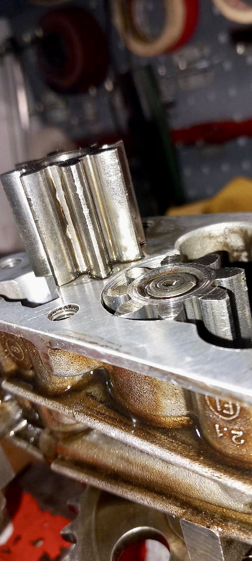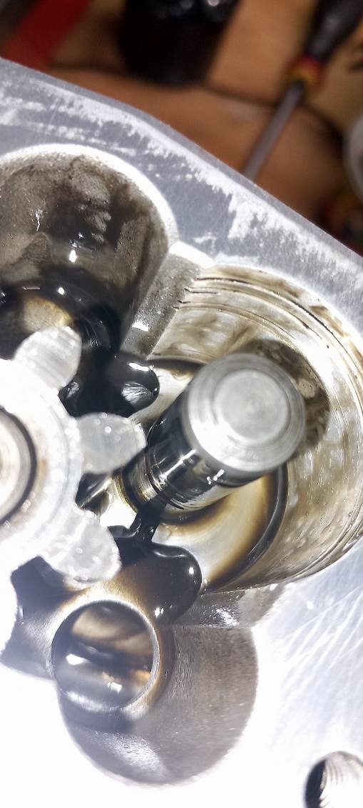 La pompe à huile étaitcuite aussi. Elle avait visiblement ingurgité des morceaux métalliques ( Olivier a retrouvé une demi rondelle qui se baladait dans la culasse ).