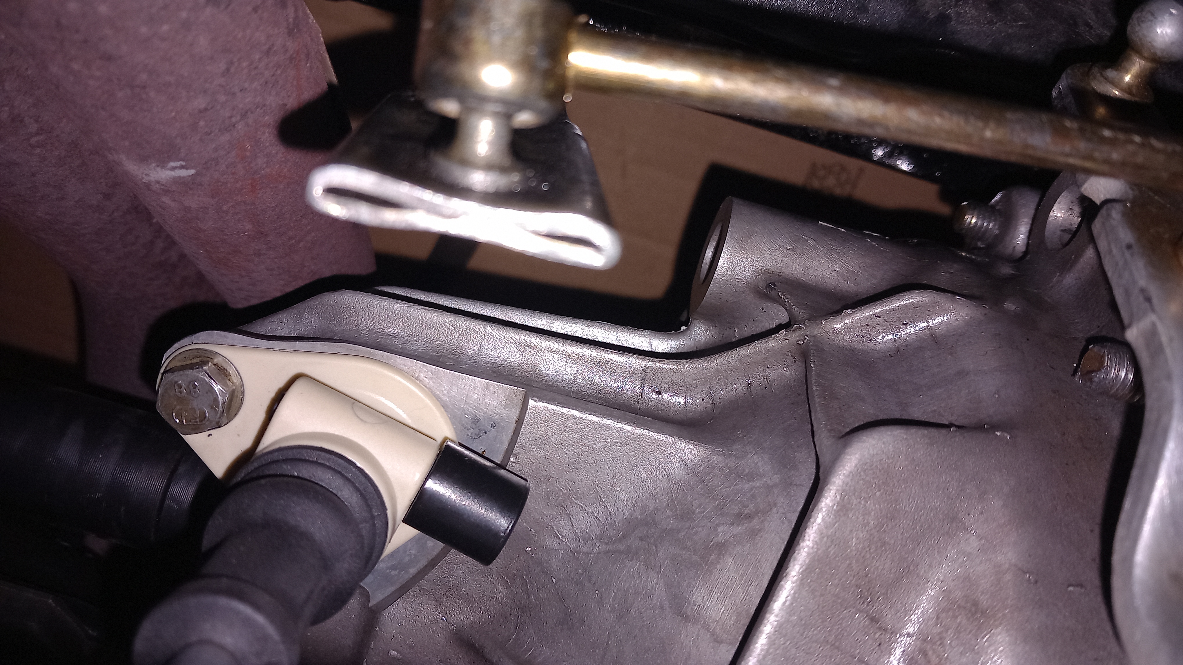 Il reste une autre petite fuite au niveau de l'axe d'un des levier de passage de vitesse sur la boite. Ca suinte par là.