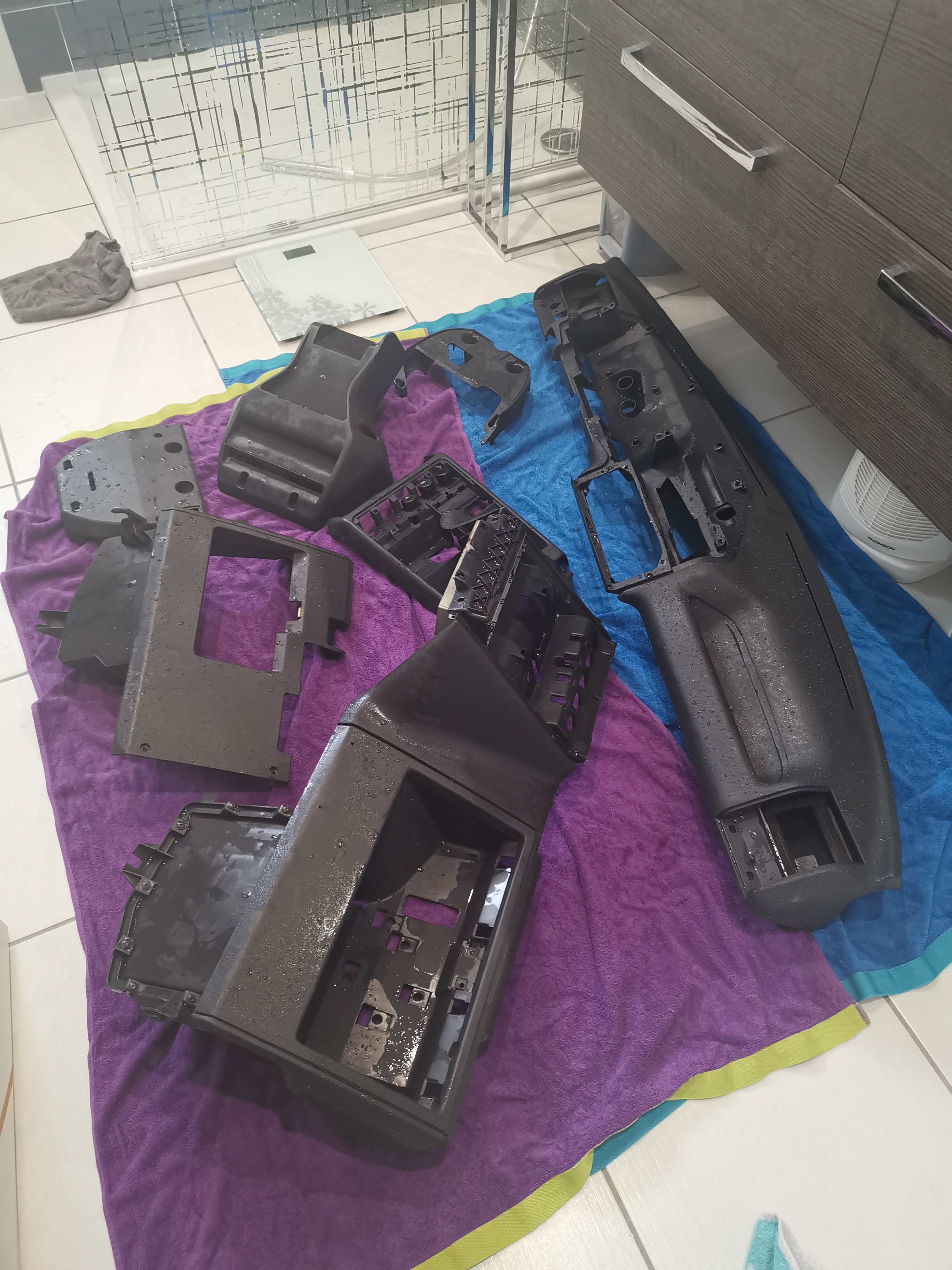Salut à tous le chantier sur la rallye de madame continue avec toujours le grattage du dessous de caisse et aussi la fabrication du joint de tableau de bord qui fait étanchéité avec le bloc chauffage qui ceci dit en passant à eu droit à sa révision aussi.....