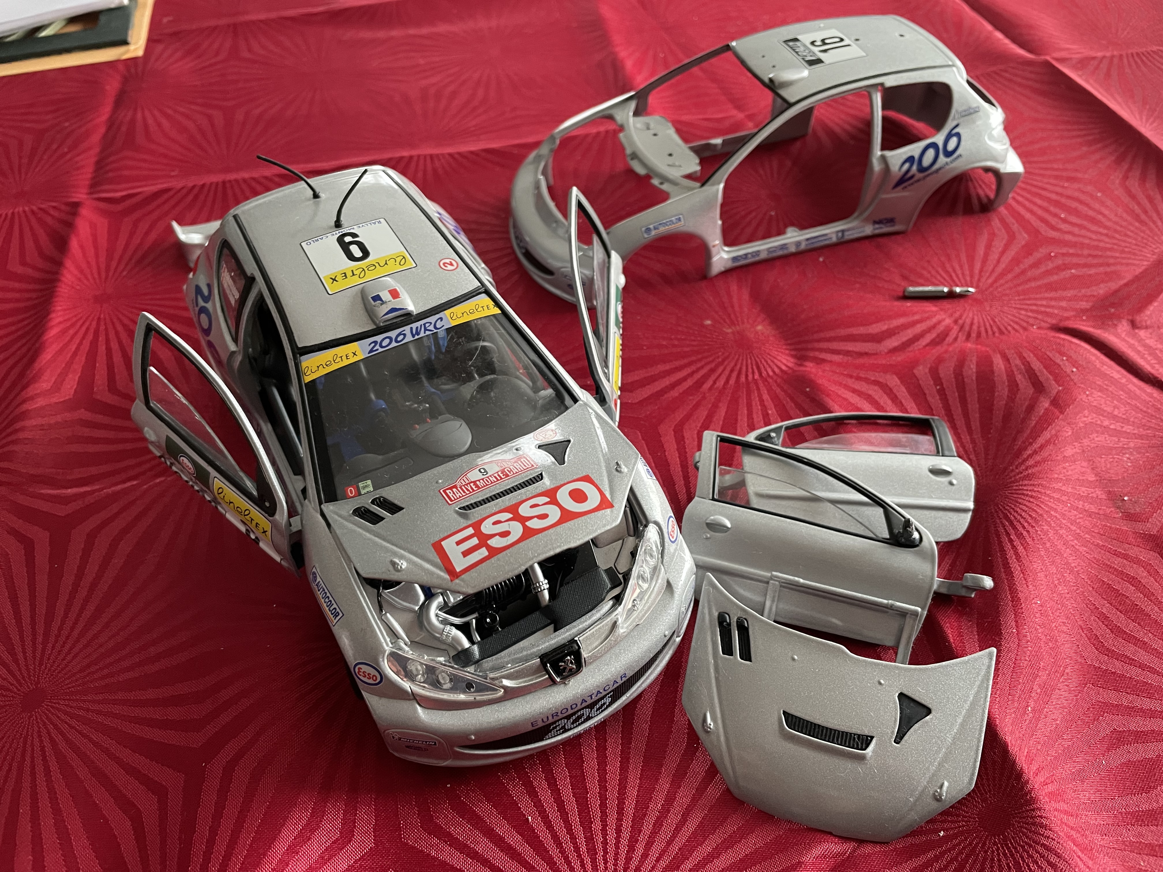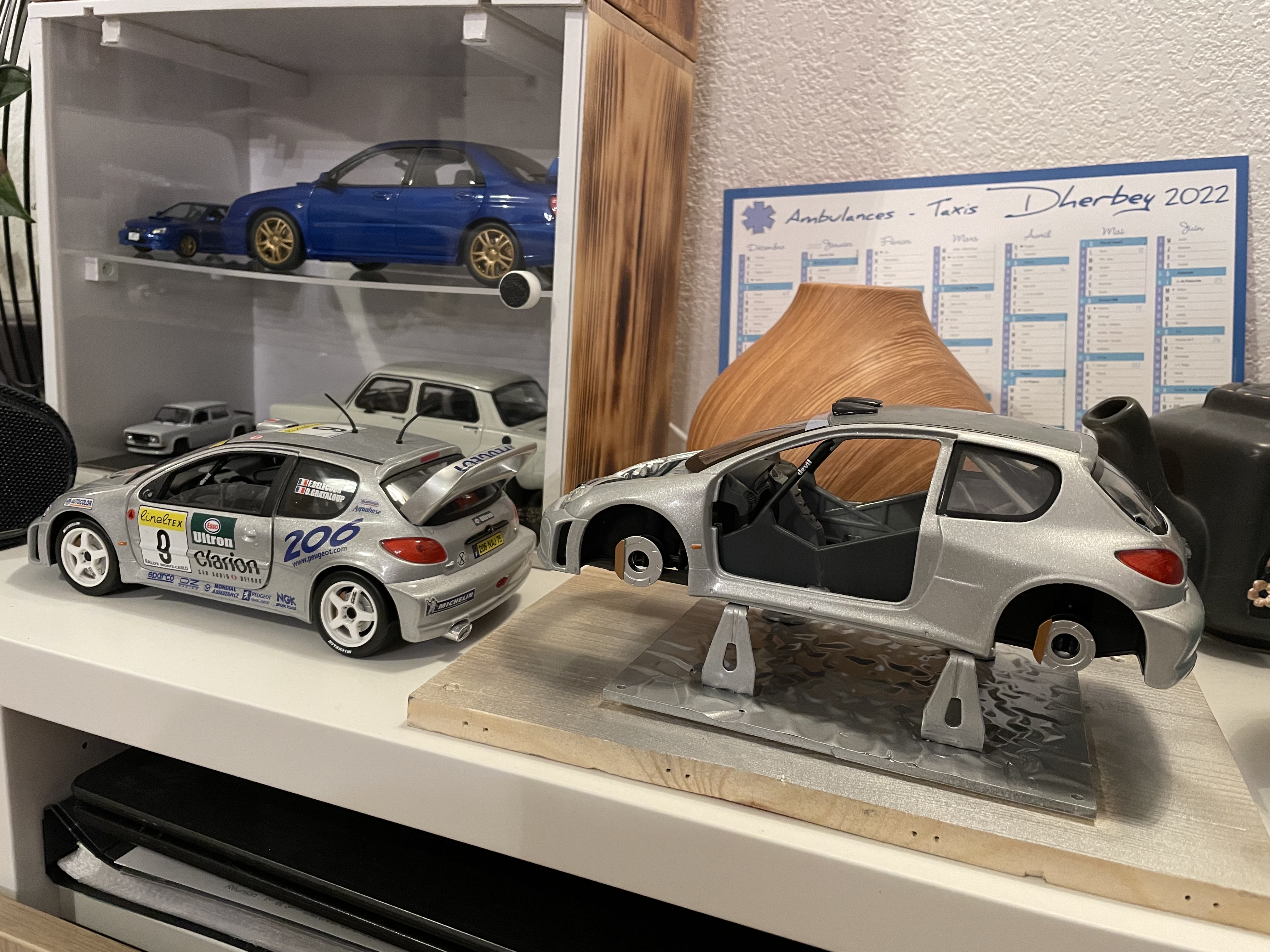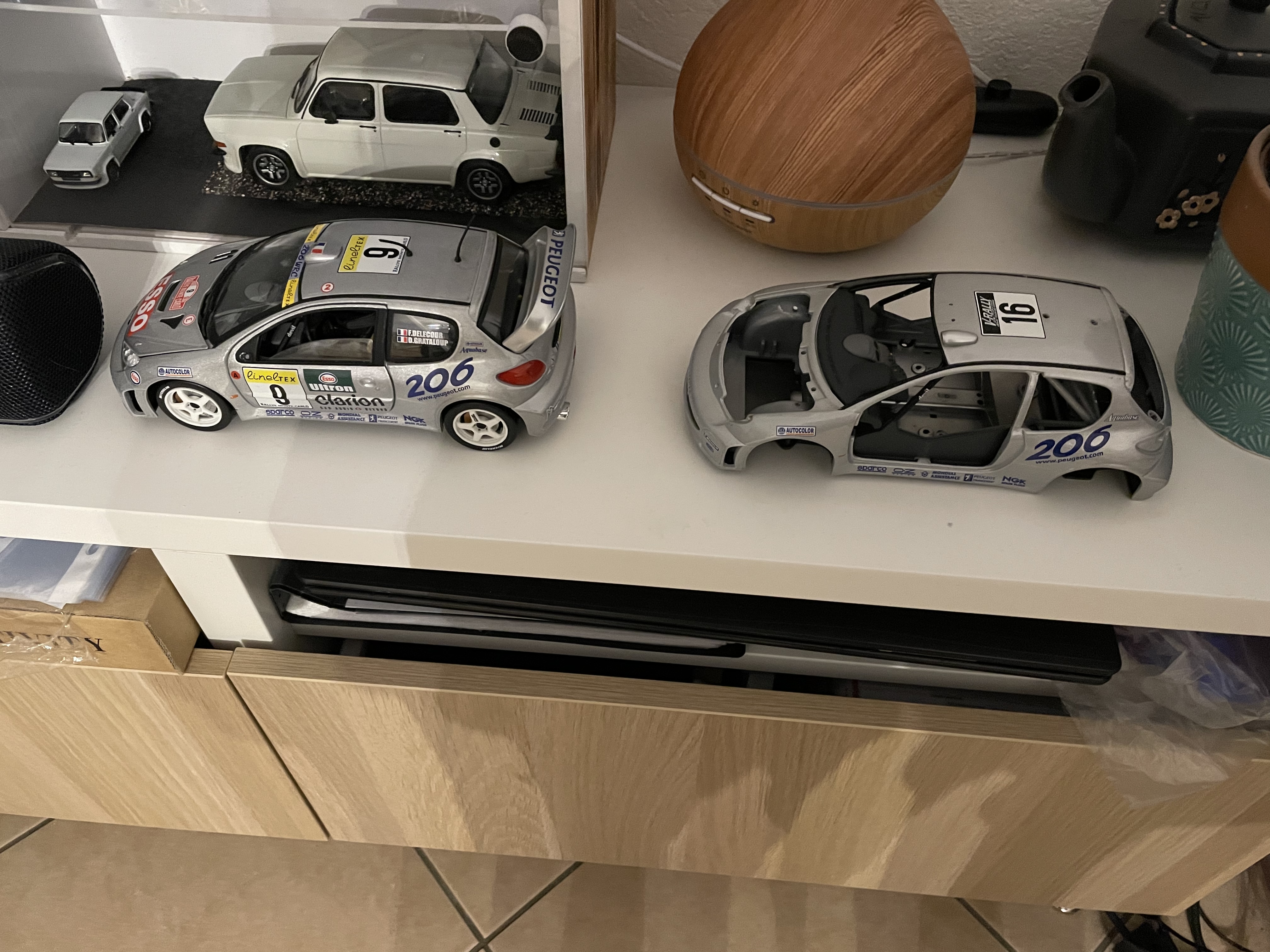 Du coup j’ai changé d’idée : une toute démontée, sans autocollants, sans vitrage , sans roues et l’autre prête à rouler .