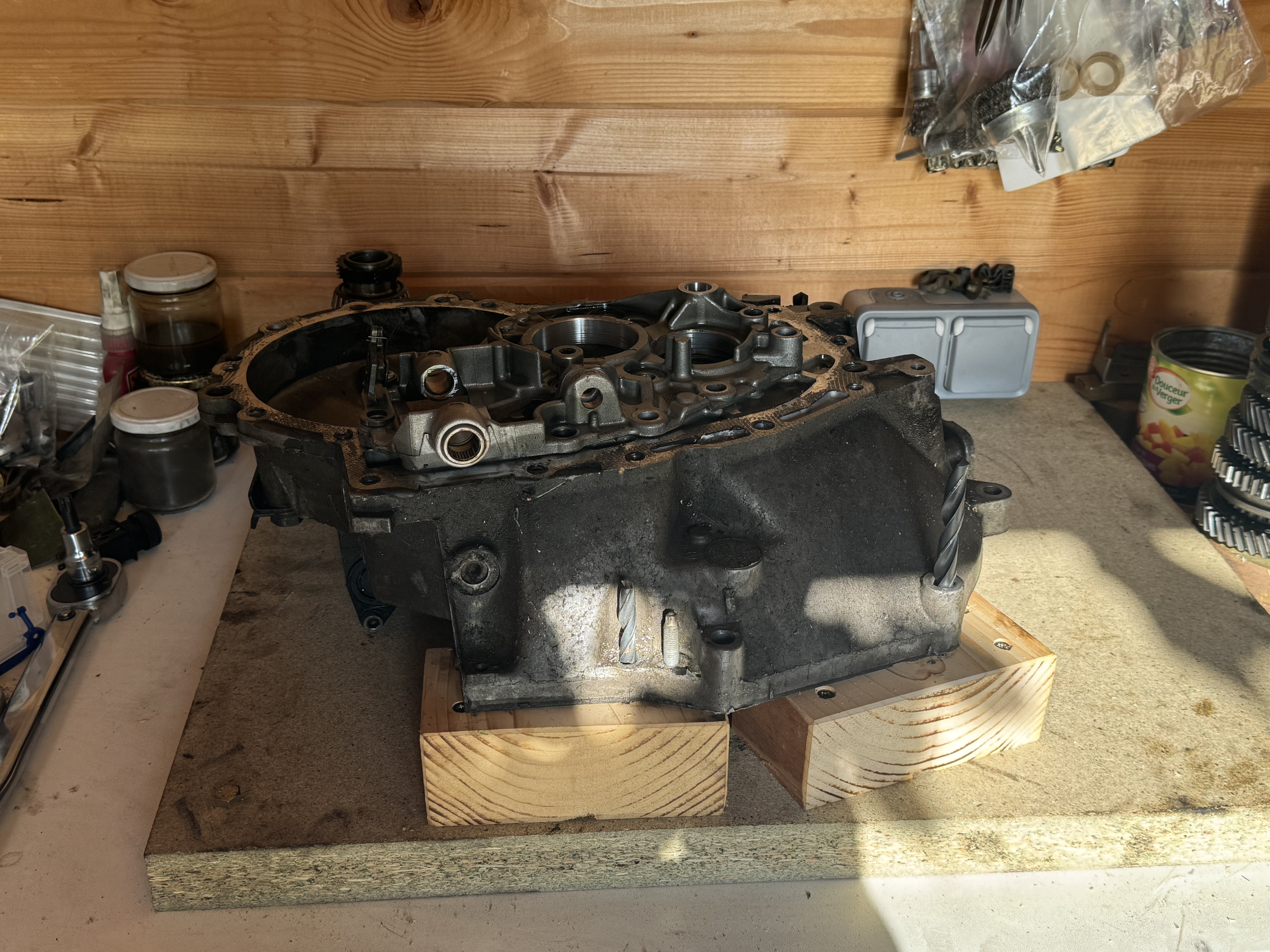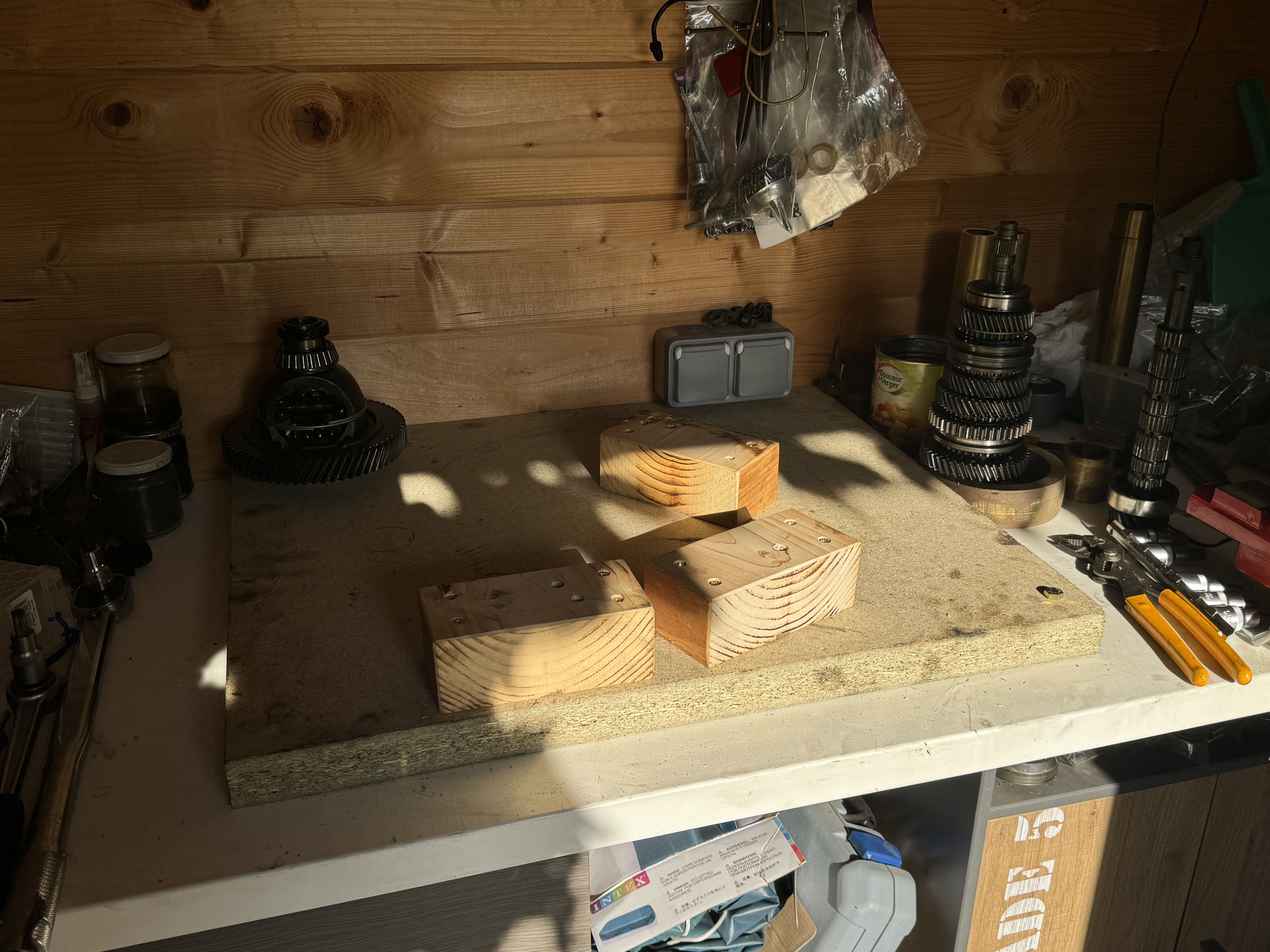 Les vacances ne se terminant que fin de semaine prochaine, j’ai décidé de faire un support pour démonter les boîtes de vitesse.