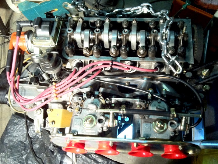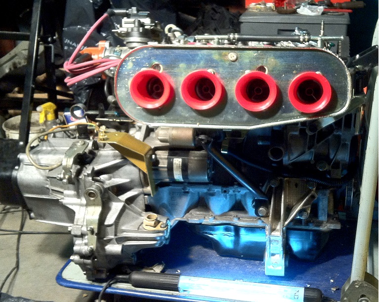 Je pourrais retourner ensuite le moteur....... changement des joints Spee des entrées de boîte, montage des carbus, la pipe est déjà en place.........montage des bougies et du faisceau.......... Pour le support de filtre à air, je vais devoir improviser.......