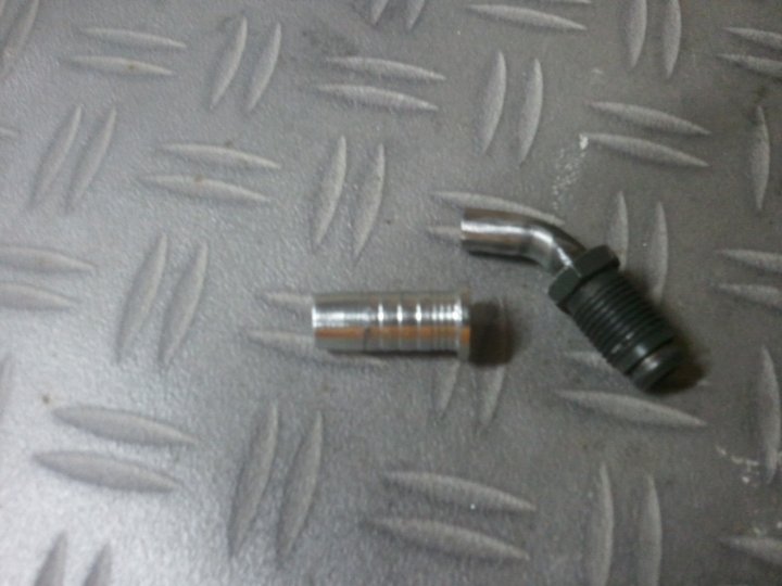 d'abord qq modif: brasure du raccord de retour cote cremaillere (recuperé sur canalisation d'origine) et un embout adapté au diametre du tuyau