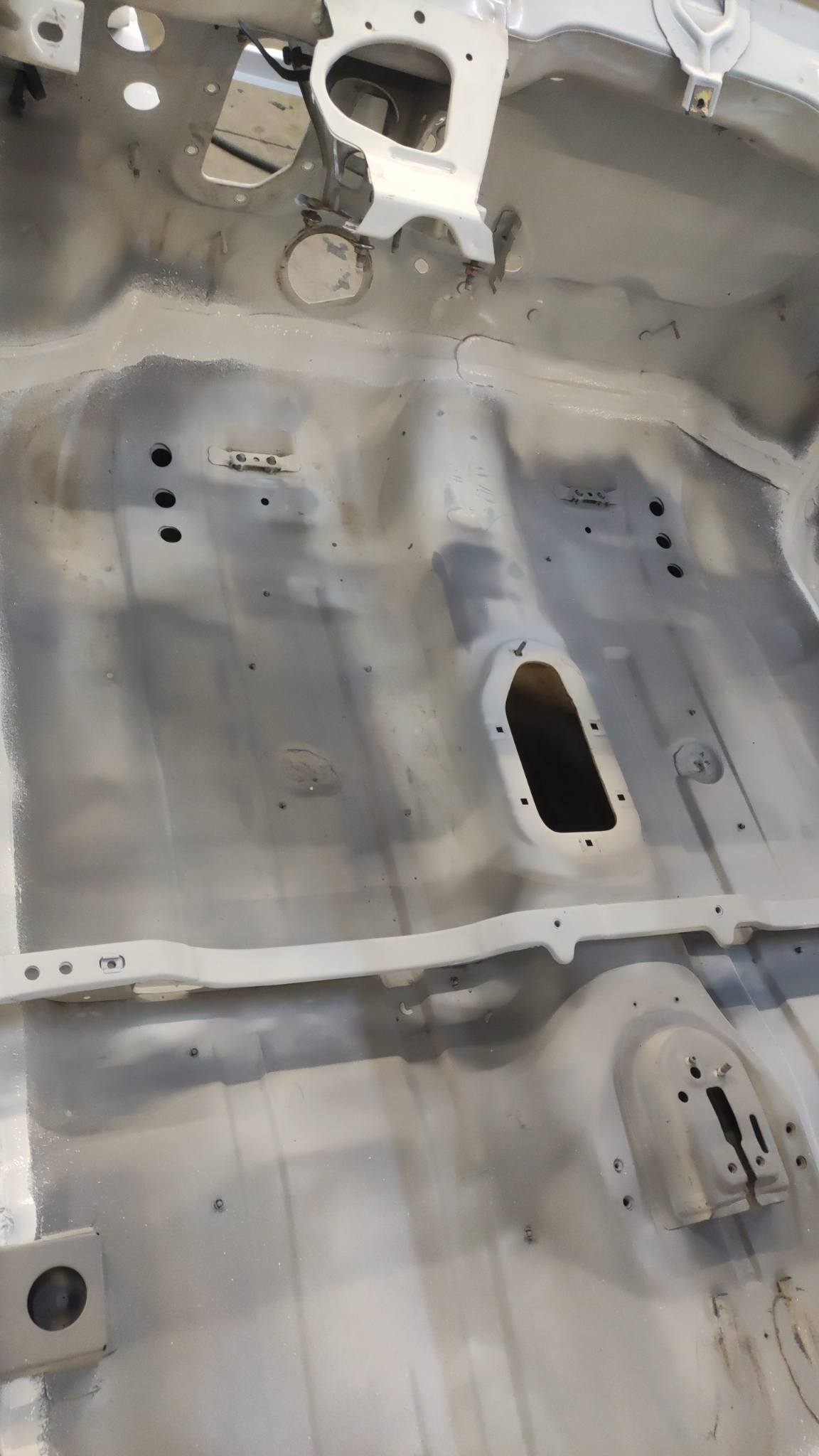 alors les dernières infos de titine, reprise de quelques soudures sur la caisse et joints de caisse, traitement dessous de caisse, et mise en peinture de l' intérieur