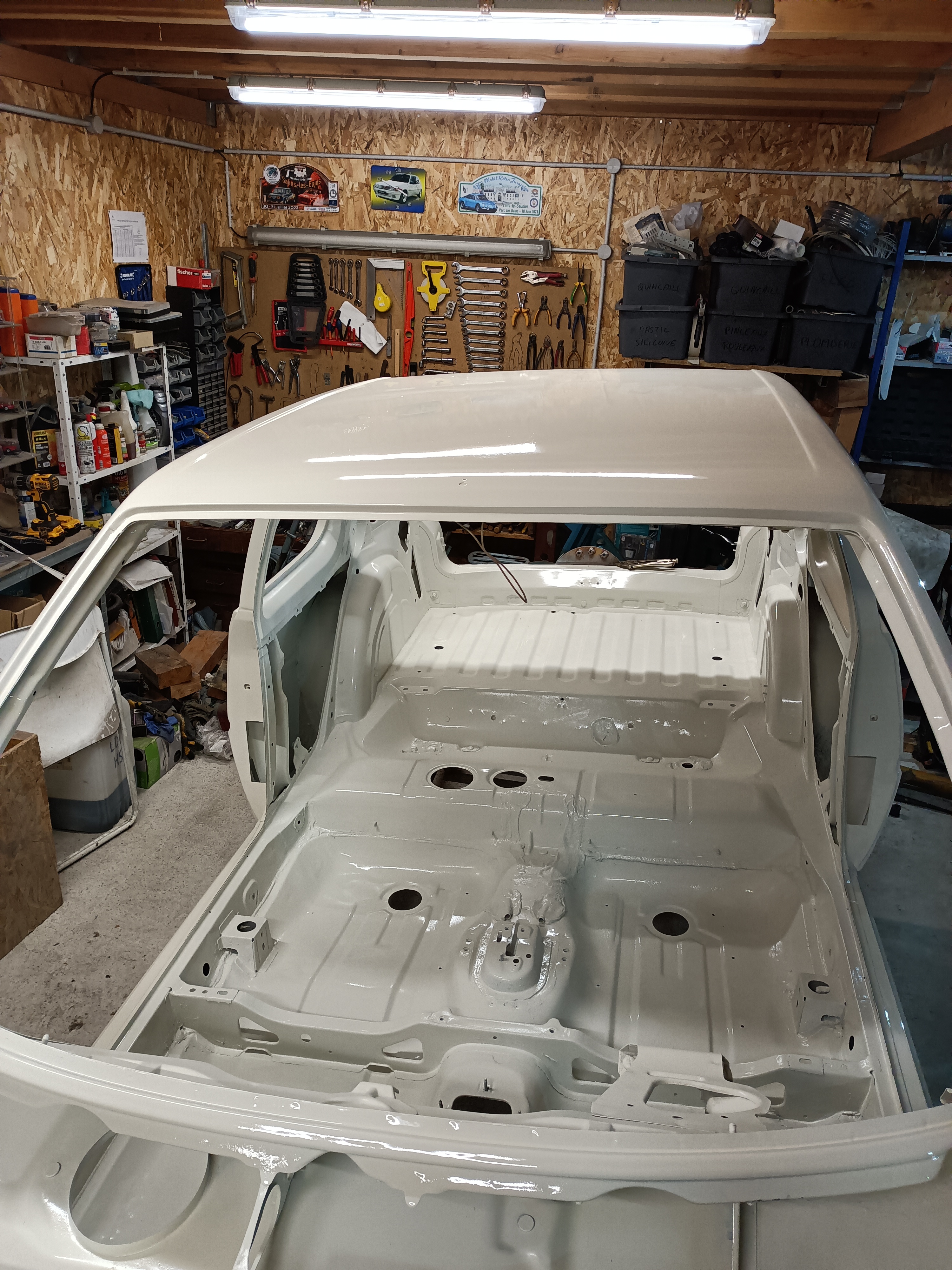Bon ben malheureusement mon carrossier a craqué, il a bien mis de l'antigravillon dans toute la baie moteur. C'est pas dramatique mais pas très esthétique. Heureusement le reste est plutôt réussi, notamment le toit qui était à la limite du récupérable. Je vous laisse juger et critiquer sur quelques photos: