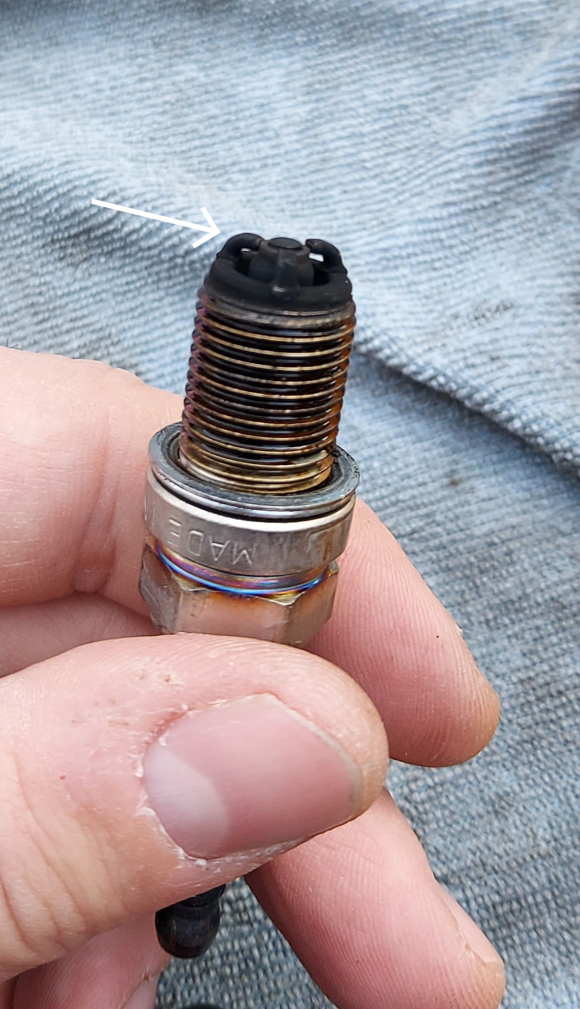 Je suis inquiet. Une de mes bougies a pris un coup ! Regardez l'électrode à gauche !