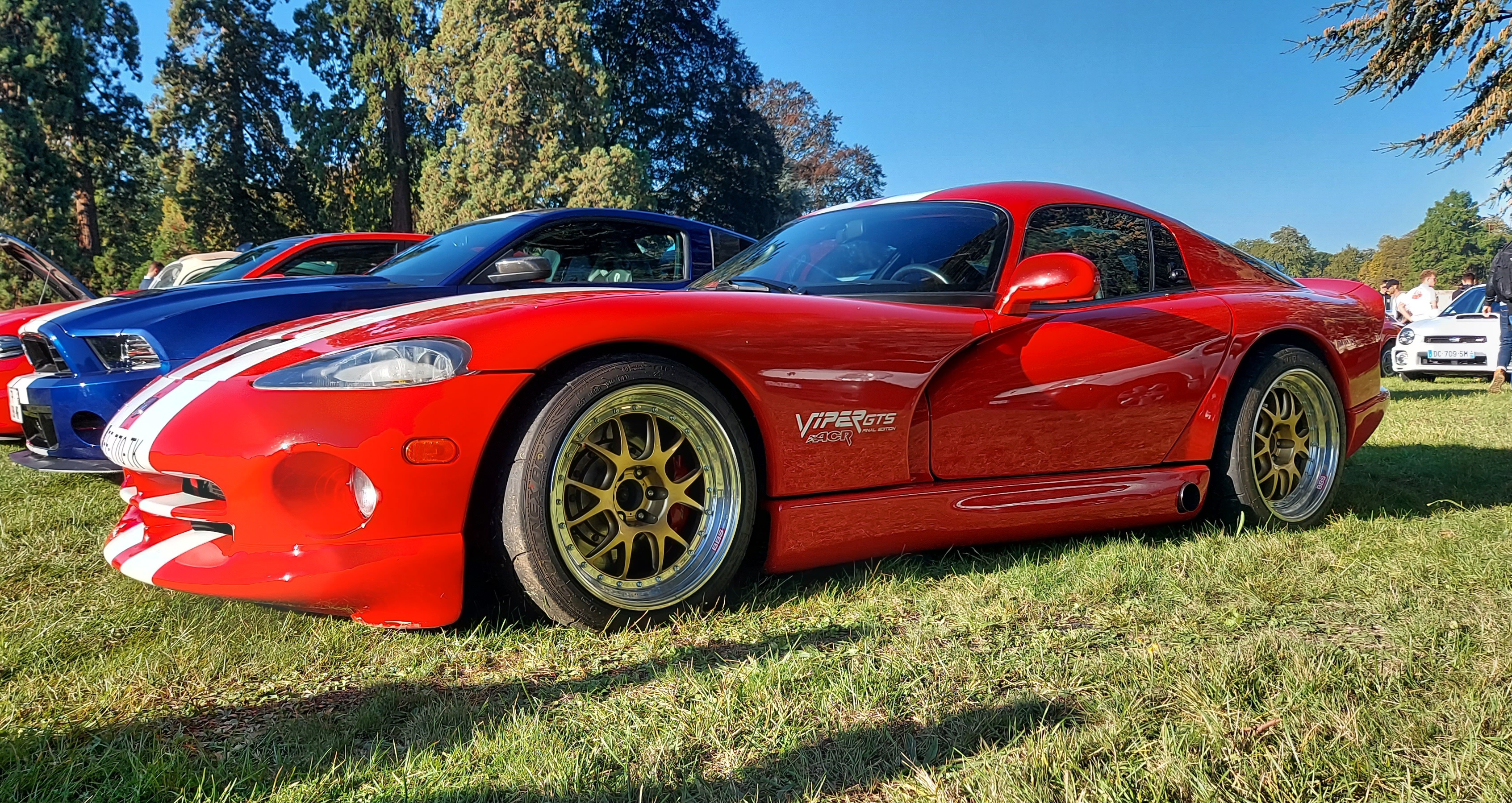 ), une fois sorti de l'A4 je tombe tout de suite sur des voitures "exotiques": Mustang, Porsche etc.. Je vois au loin des Ferrari récentes, du beau véhicule quoi...