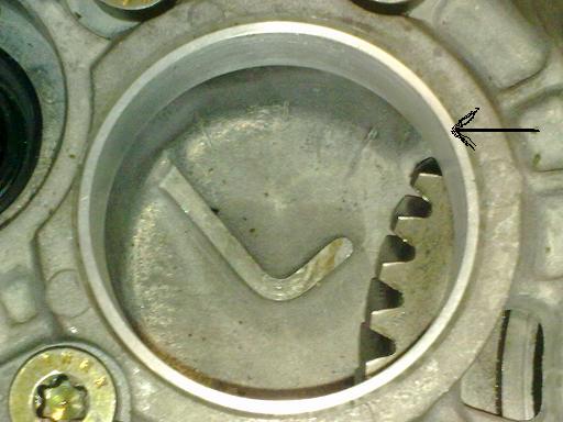 suivez la petite fleche elle vous montrera la bague la bague en alu pour pouvoir poser le nouveau roulement.