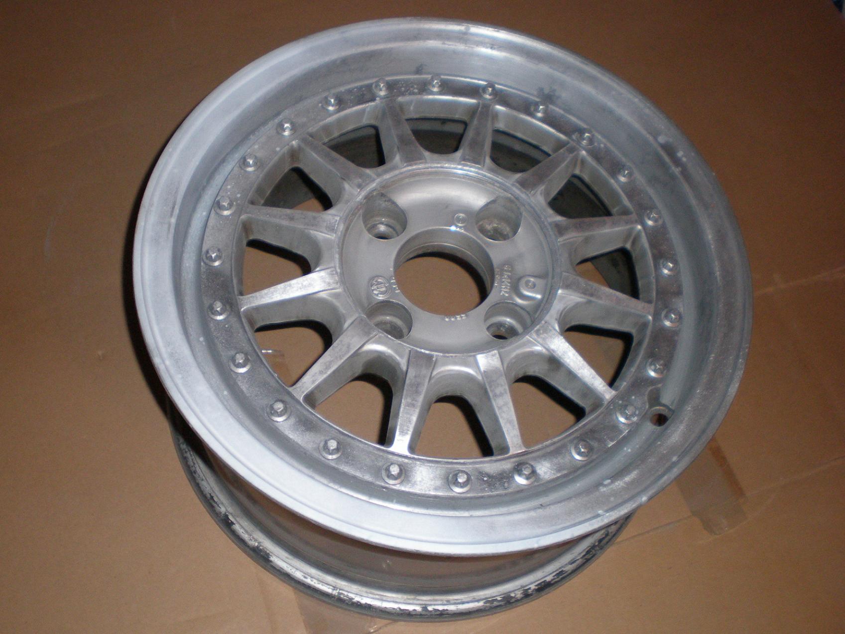 Voici ma dernière trouvaille en 6Jx14... J'ai sommairement nettoyé et décaper la 1ère jante, pour avoir une idée précise de l'état, il reste maintenant à peaufiner et à renouveller l'opération sur les 3 autres...